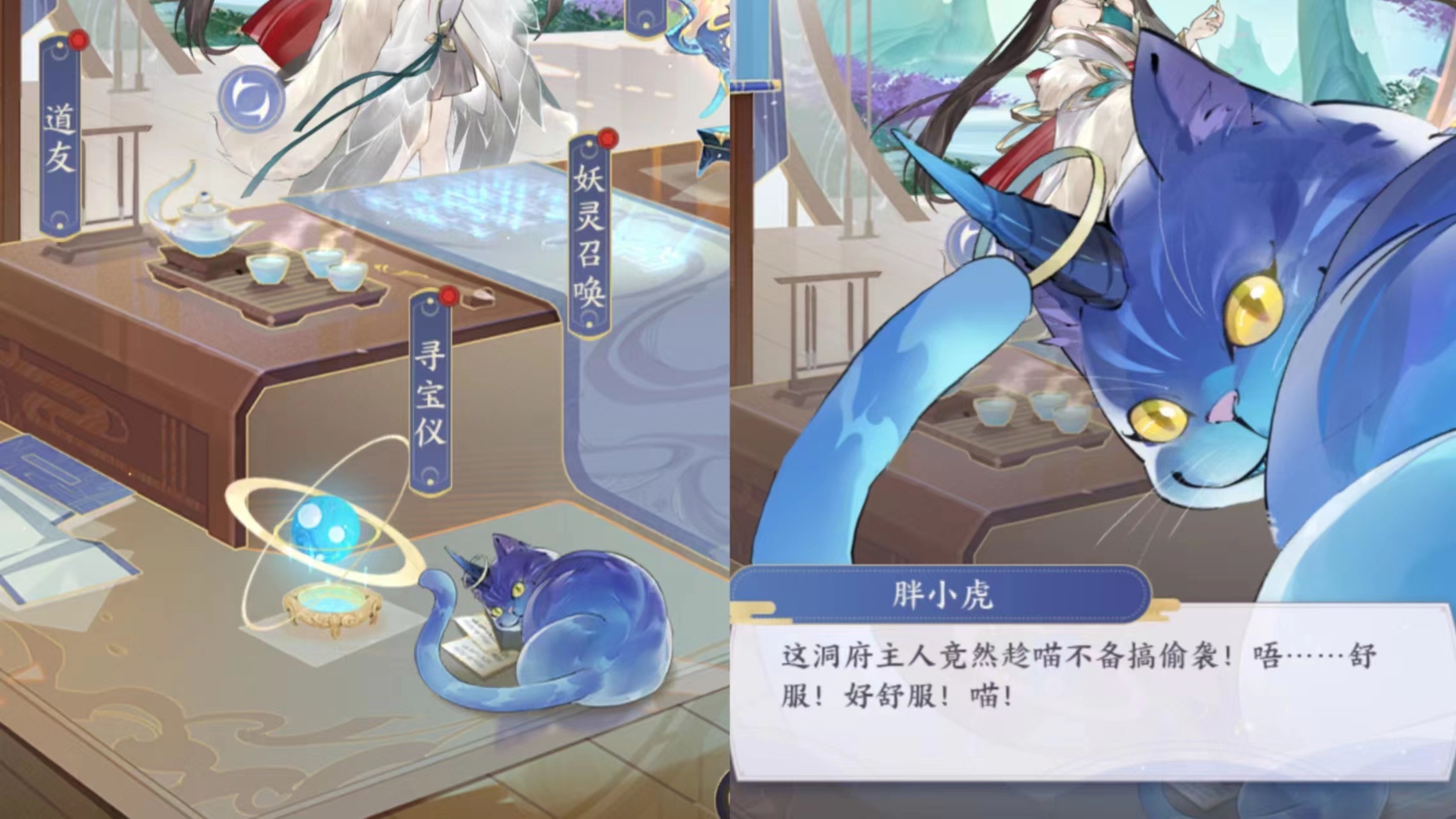 依次完成上面4个以后,最后一个胖虎会回到洞府的寻宝仪旁边,点击对话就可以完成啦。