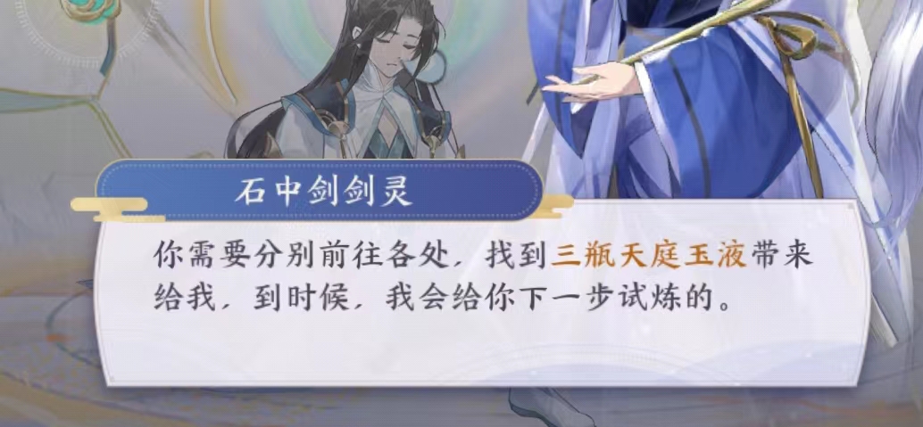 伺候好这把魔剑以后,就可以开启天庭玉液的一系列的隐藏任务了。总共需要花费3天的时间来开启天庭玉液。