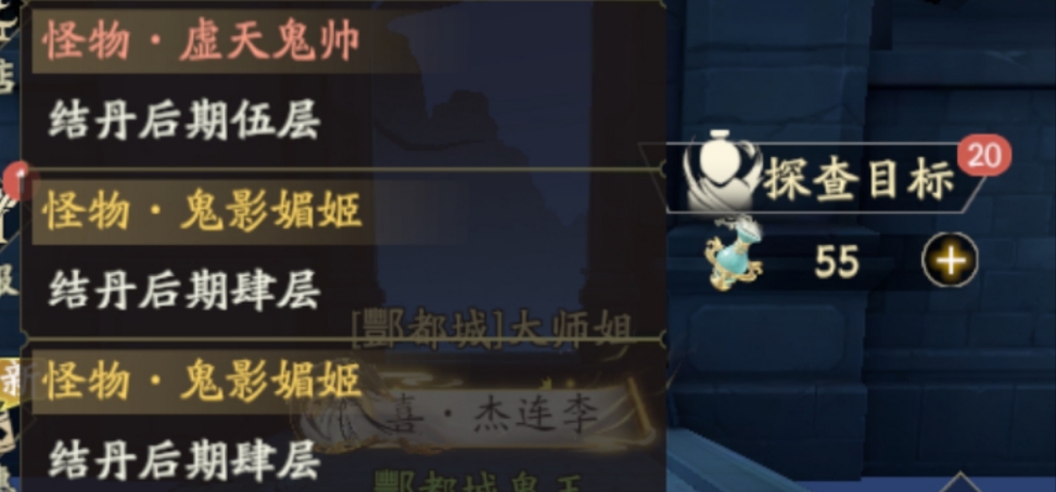 玩法和魔道入侵差不多,需要通过探查来找到场景的怪物和其他的道友。
