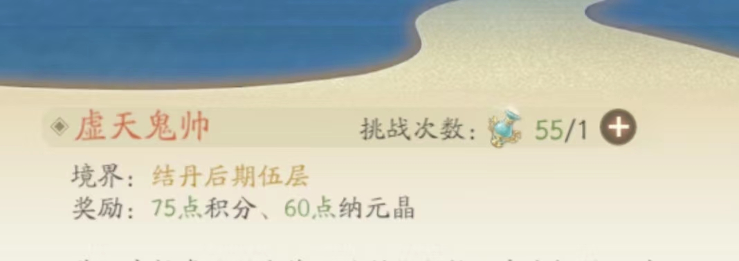 ⭐虚天殿的初始挑战次数为18次,完成功法250万点经验任务后+18次挑战次数+2天堕天松兑换的挑战次数。一共可以获得72点次数。