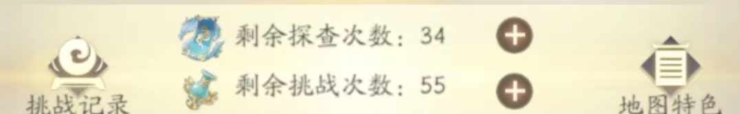 当然了,除了需要准备好四倍符以外,因为活动持续2天,每次挑战都需要挑战次数和探查次数,这个也需要算进入的。