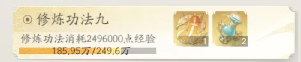 但是完成9个档位需要耗费的功法经验非常多,四舍五入= 250万点功法经验。