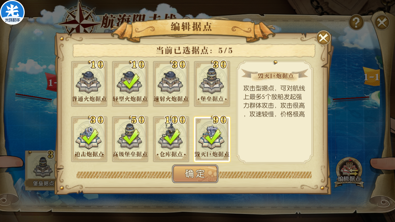 毁灭巨炮据点:攻击型据点,可对航线上最多5个敌船发起强力群体攻击,攻击很高攻速较慢,价格极高。重点就是伤害贼高!!!
