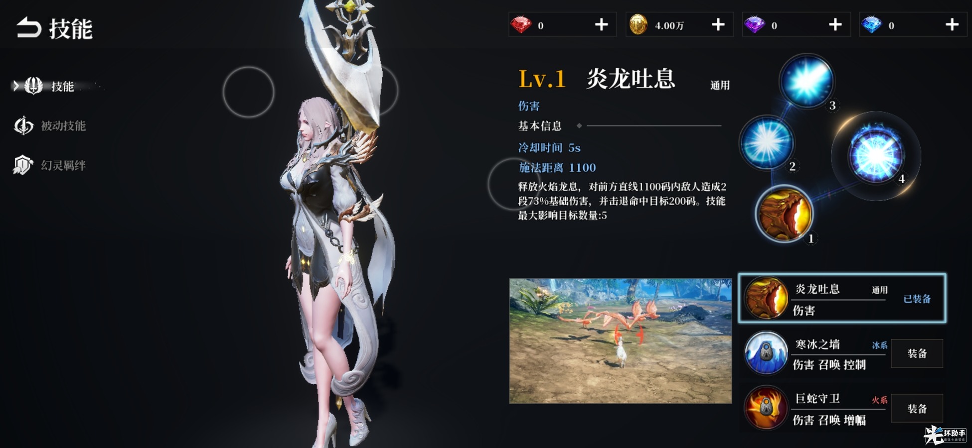 释放技能后,魔法师将召唤火焰龙息,对前方的敌人造成烧伤和击退效果。对于魔法师玩家来说,该技能很适合用于风筝战术,即通过不断的远程攻击耗死目标。