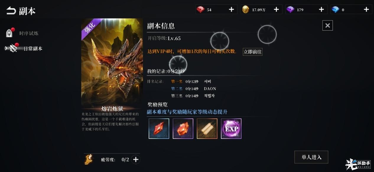 有别于前三种方式,熔岩炼狱主要是用来获取武器强化材料以及神佑卷轴的副本。该副本65级即可开启,但是由于副本BOSS炎帝的等级为122级,还是有一定难度的。这里小编的建议是如果有条件的话可以考虑首充一下,领取首充奖励后大概率可以跨等级通关熔岩炼狱副本。