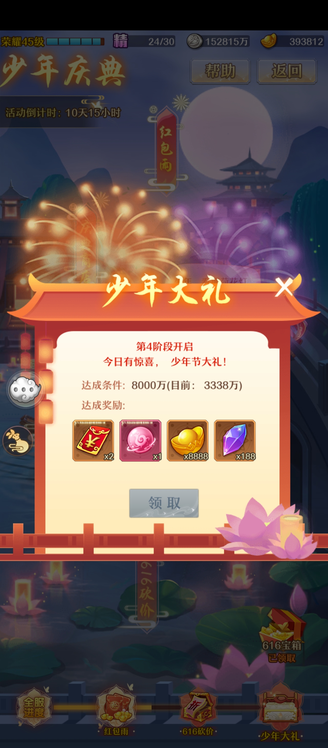 ◆ 少年锦鲤大奖:赠送充值红包*68+666元宝+66水晶。