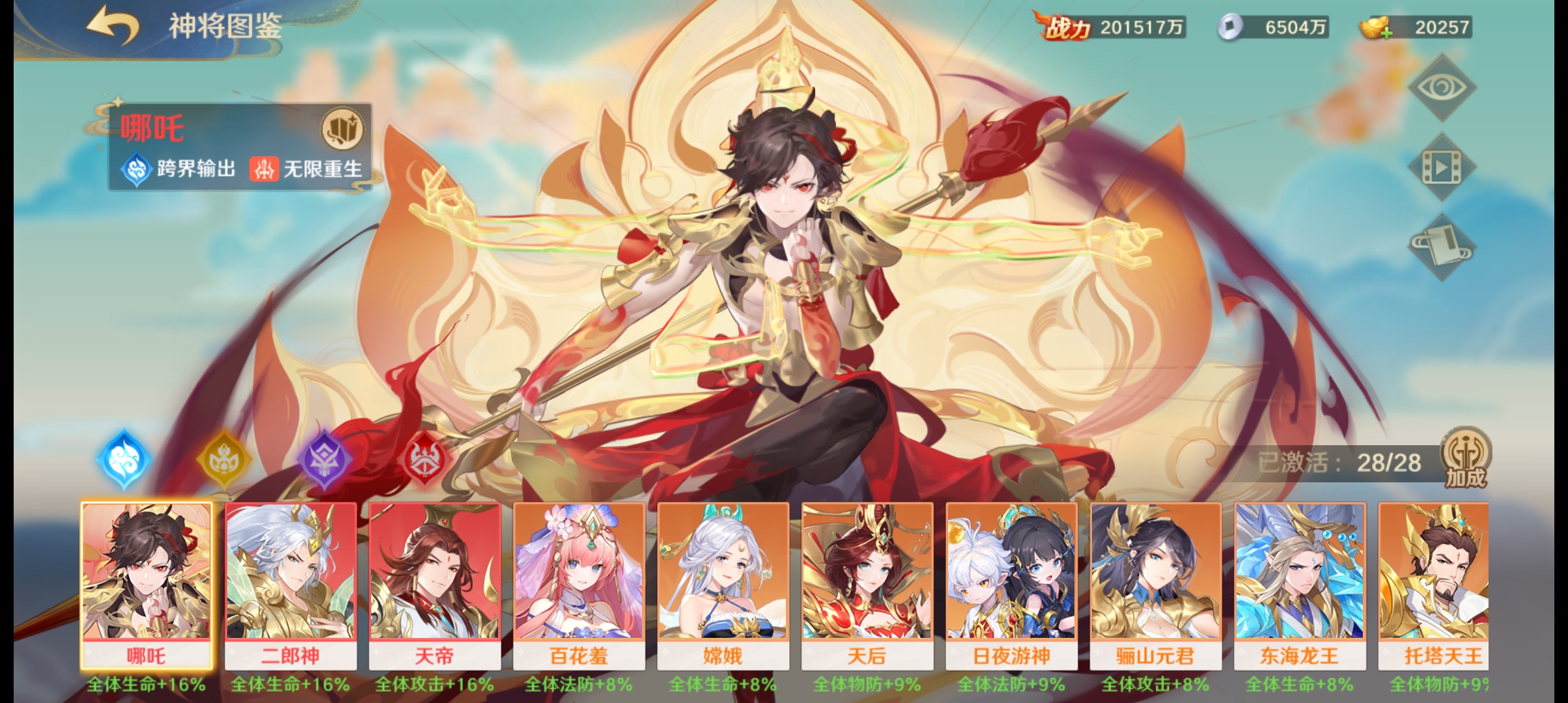 阵容如下:哪吒、金角、狐狸、铁扇公主、孔雀公主、主角(铁扇公主)。