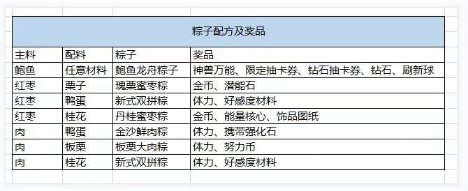 粽子合成方式与奖励一览