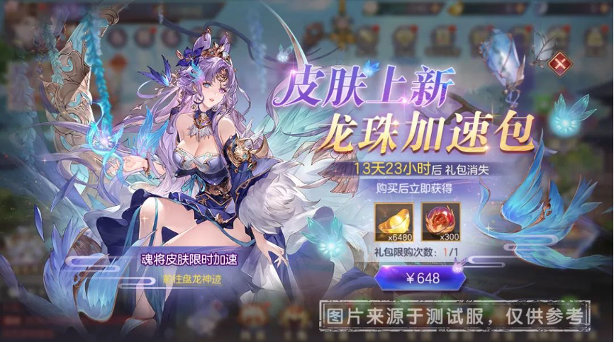 龙珠加速包:内含「龙珠*300,元宝*6480」,售价648元,活动期间限购1次。