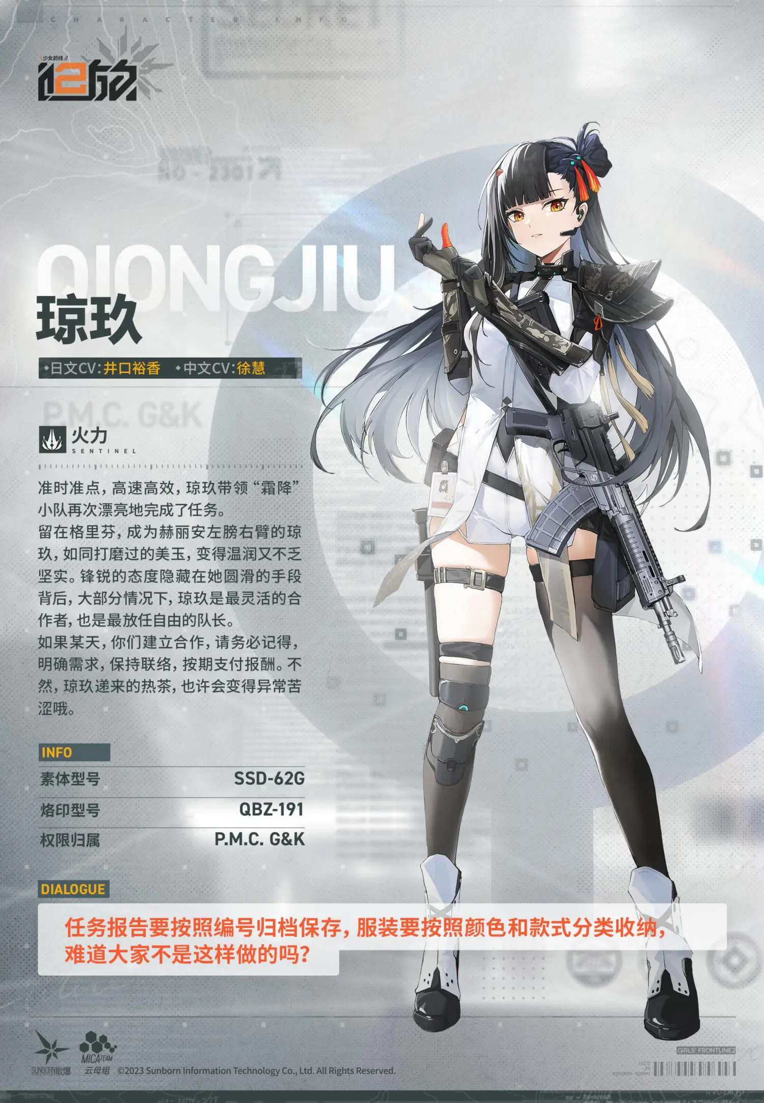 爱的指挥官,现在为您带来火力人形【琼玖】介绍!