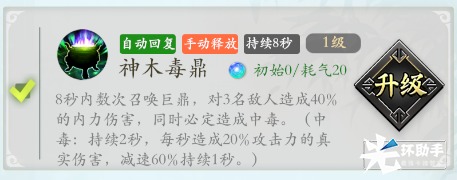 群体内力攻击术,拥有高输出伤害的同时还有强力控制效果。
