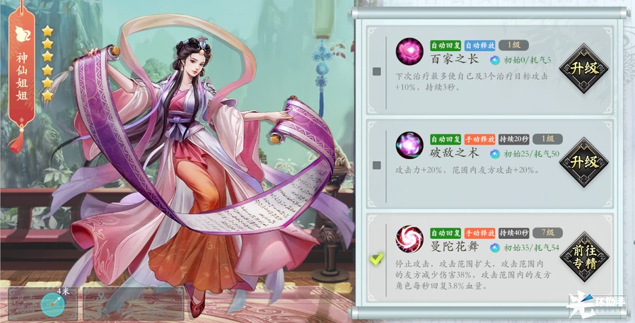 群奶,可以给友方侠客加攻击和真气,属于不可替代型的群奶。