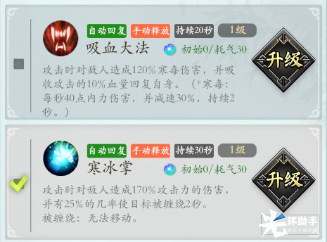 单体内力攻击术,技能有减速效果,既能输出又能控场,新手期建议培养。