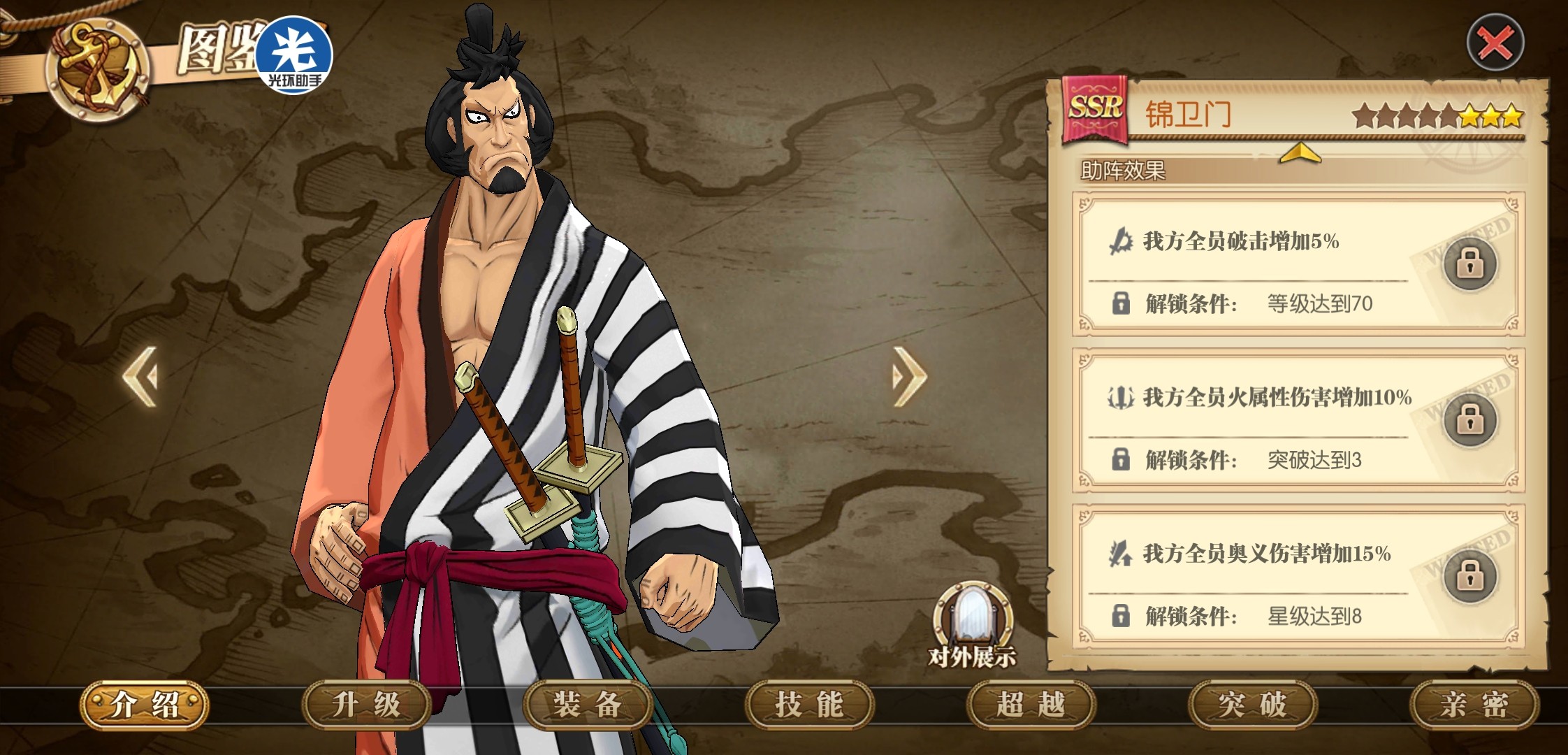 锦卫门最近热度挺火的,因为是免费送,所以基本全员都有,而且打剧情的伤害也非常的高,是目前剧情中打伤害最高的角色。但目前来说,玩家并不太缺在剧情中打伤害的角色,如果用来打悬赏的话还是很不错的,但锦卫门的缺陷很明显,就是只能通过黄金战魂去升星,这对于平民来说,还不如去养一个新限定,又能打剧情,又能打天梯,锦卫门因为速度不够快,所以在天梯上是根本不能出手的,花费350黄金战魂单纯的去为了打剧情,是并不太划算的,但目前锦卫门是单体伤害最高的角色。对平民来说,6星起步,100级8星完整。