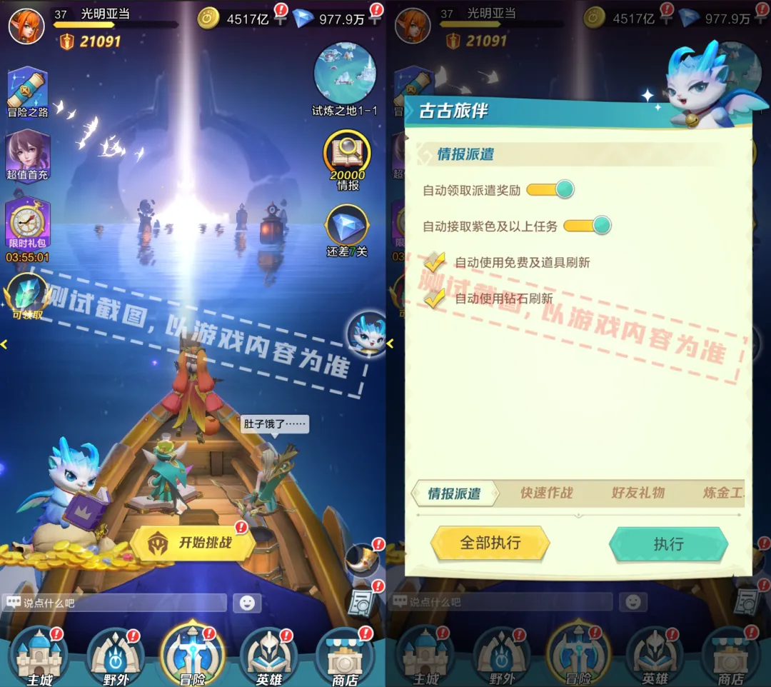 »» 情报派遣、快速作战、好友礼物、炼金工坊、商店购买;以及公会试炼、无尽深渊、秘境探险、竞技场、试炼之地。