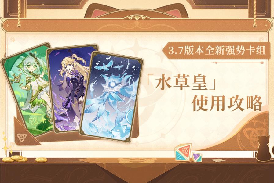 hallo,旅行者们大家好,这里是墨菊,V3.7版本的尾声,让我们来看看这个版本比较热门的卡组套牌「水草皇」的使用方法吧~