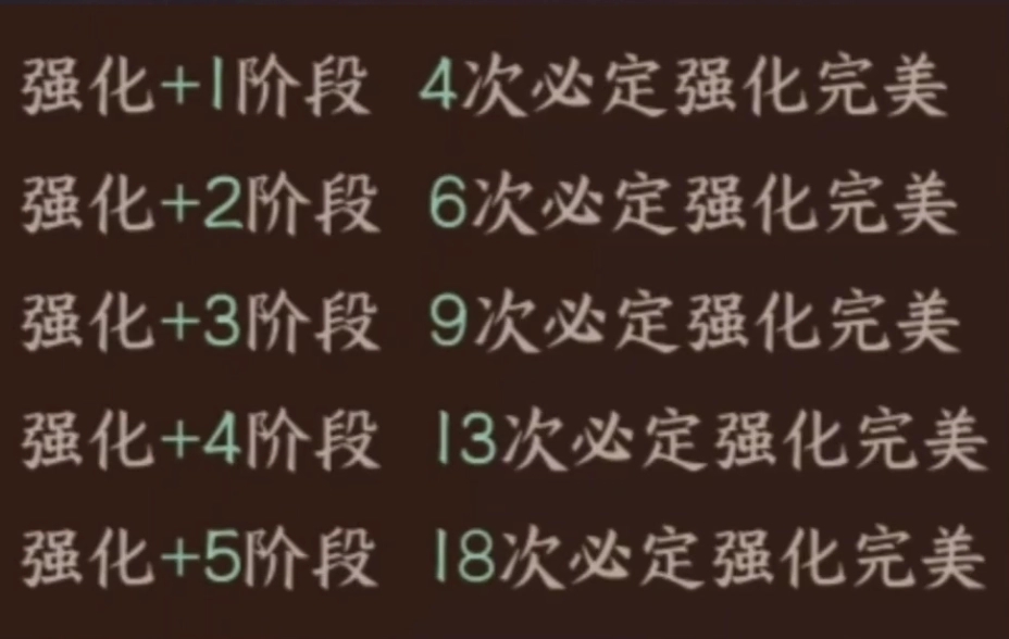 还是和强化等级一样平均强化阶层,强化完美有失败保底次数,详细看下图。