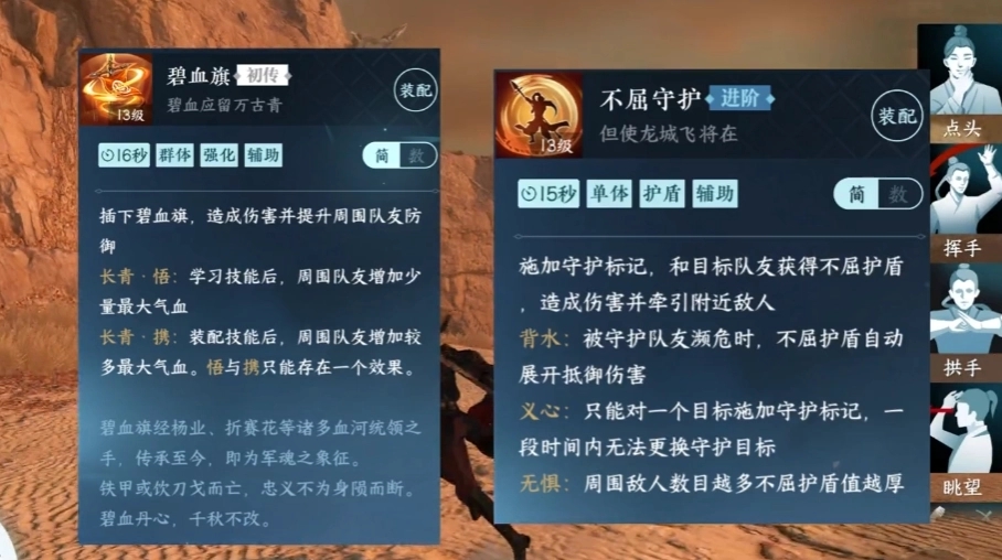 技能进阶优先级,铁化银钩扫六合,蛟龙镇海,技能搭配PVE扫六合丹心饮翼,铁画银钩凌云跃,蛟龙镇海,自在飞花,破墨山河,腾龙月渊。如果副本里需要拉怪什么,凌云跃换成铁骑,然后大家记得释放铁化银钩时记得多攒点枪魂,再释放伤害会高一些。