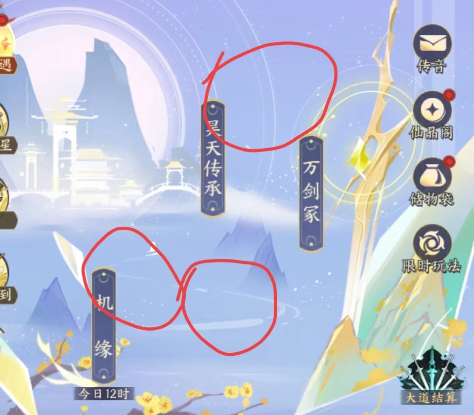 在【机缘】和【昊天传承】之间会出现小白船点击后可以获取仙晶奖励。