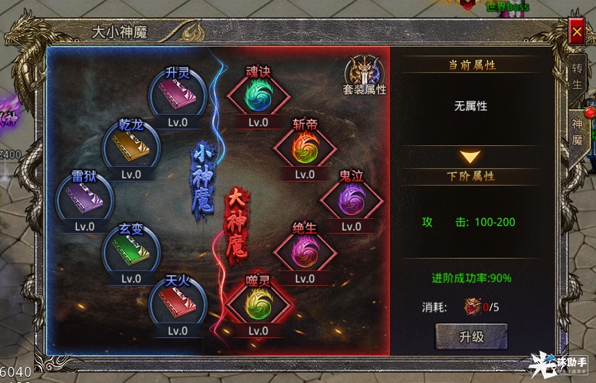攻略-大小神魔勤勉搬运的后辈君发布于 2023-06-29关注《伏龙》中大小神魔的玩法,各位勇士们是否熟悉呢?以下是小秘书整理的大小神魔攻略,助力勇士们征战龙城!1.大小神魔50级开放。小神魔分为升灵、乾龙、雷狱、玄变、天火,大神魔分为魂诀、斩帝、鬼泣、绝生、噬灵,每个部位可升25级。2.大小神魔分别可提升PK固伤减免、暴击固伤、生命值、防御、攻击3.大小神魔可触发共鸣套装,额外增加生命、防御、攻击及对应百分比加成