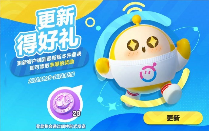 ♥6月29日9:00-7月16日23:59,更新客户端到最新版本并登录,还可以获得20彩虹币的奖励!奖励将一次性通过邮件发放哦~奖励如此丰厚,皮蛋疯狂心动,蛋仔们还不赶紧行动!