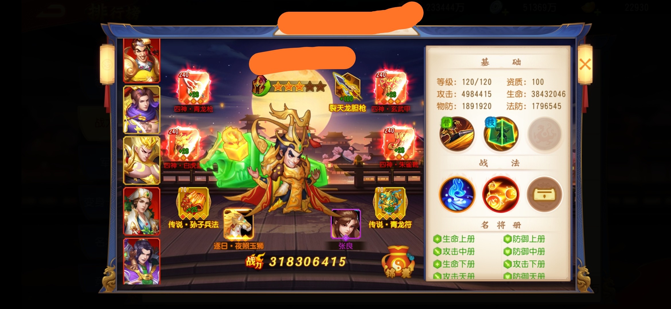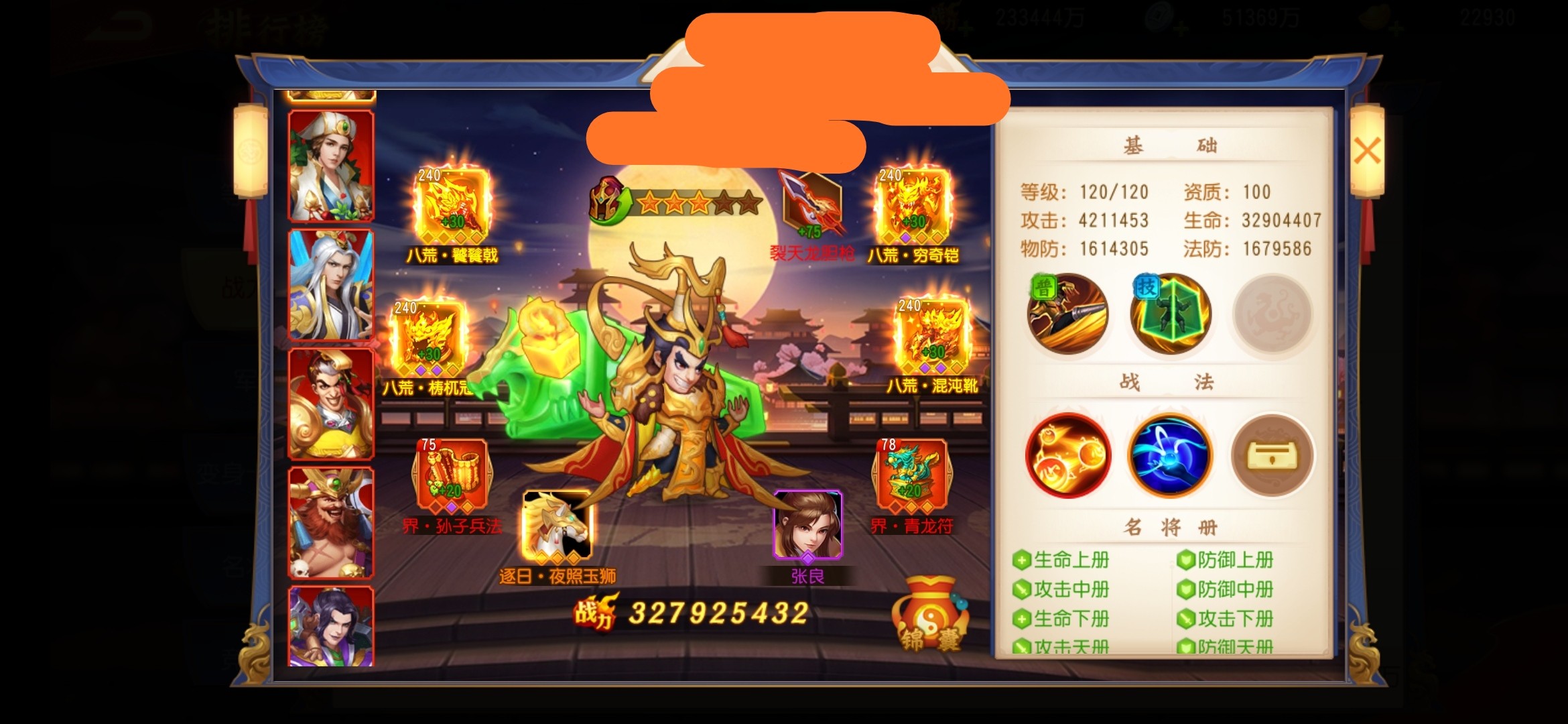 还有一种跟上图土豪玩家同等级别的群雄则是:董白,卢植,南华,羊祜,荀灌,华佗。这套阵容。加入了晋国国家这套阵容比上图那套阵容可以说猛很多而且输出核心多一个羊祜。
