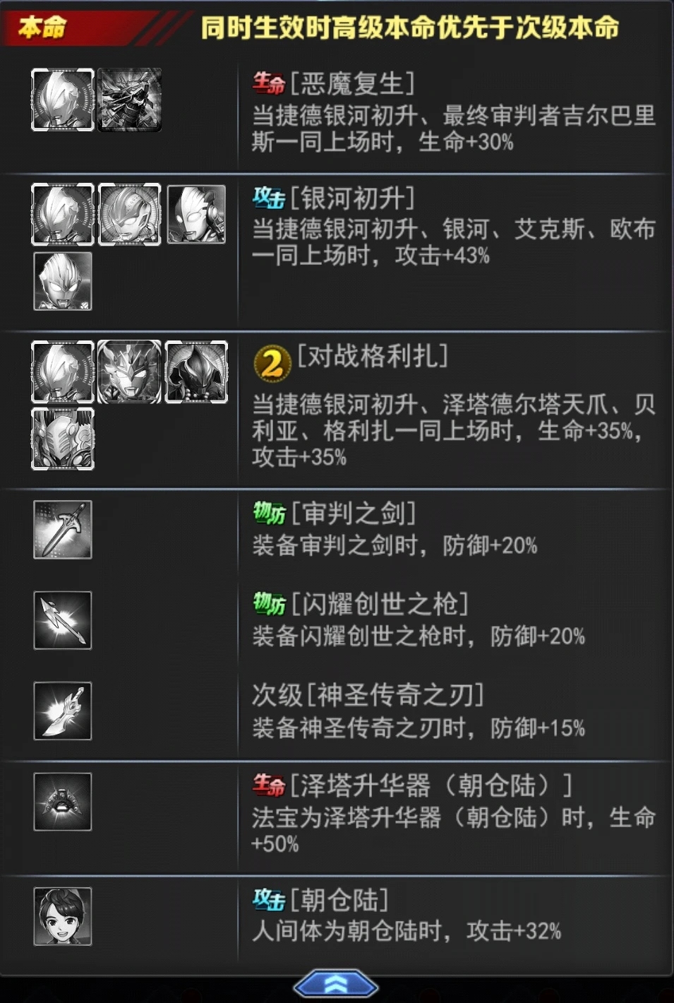 +7 银河光芒上阵出场时,己方场上每存在一名目标自身造成的所有伤害增加10%,持续15