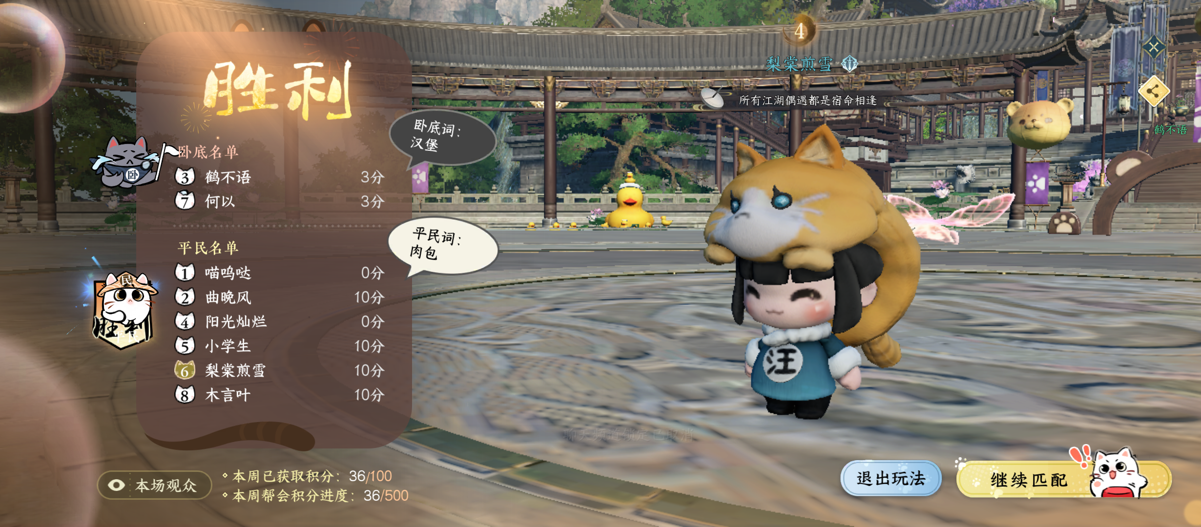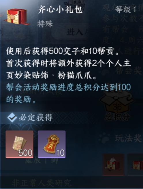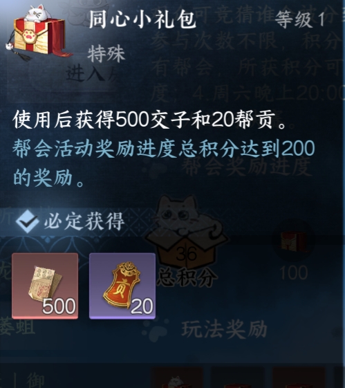 2.获得奖励交子、帮贡、天外陨铁、限时称号等奖励,玩一把胜利增长20-30积分,输了增长0-10积分,虽然奖励有些少,但在这个玩法能和不少女玩家互动,也算是个额外的奖励了。
