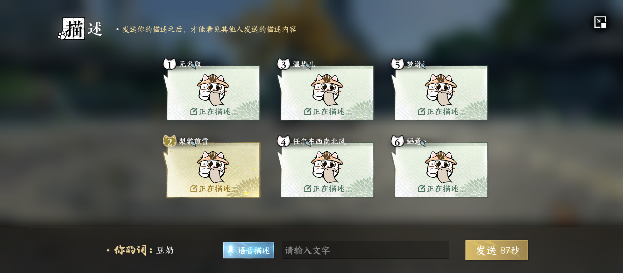 每次描述后,这里我们可以在对话框在一段时间内进行交流,随后进行投票,这里有个小技巧就是可以和参与者进行交流,尽量锁定卧底选择。