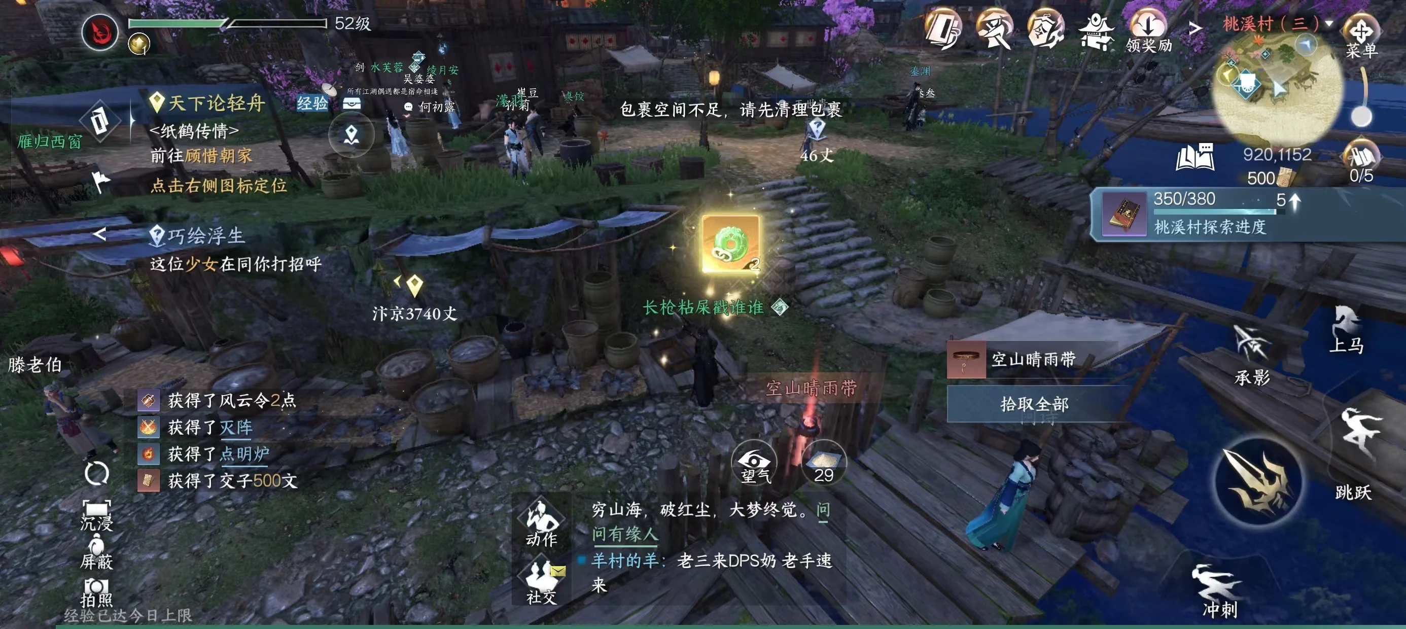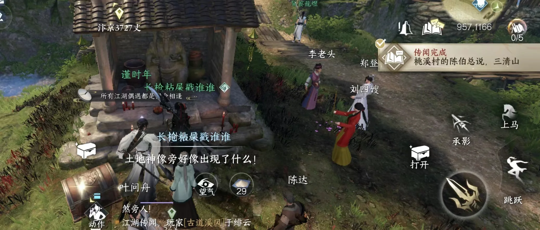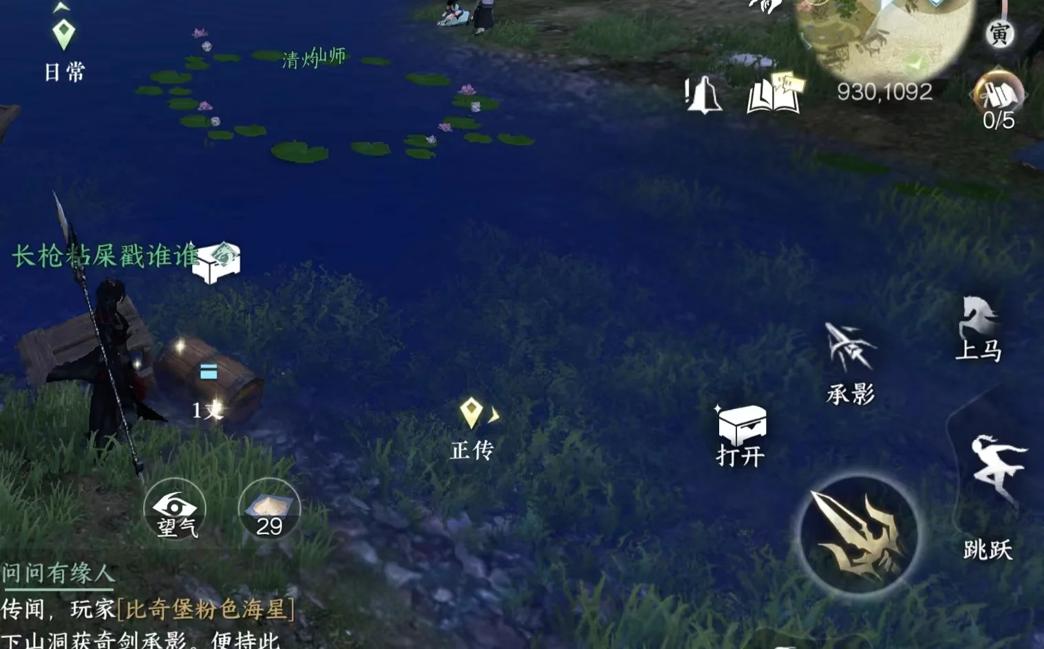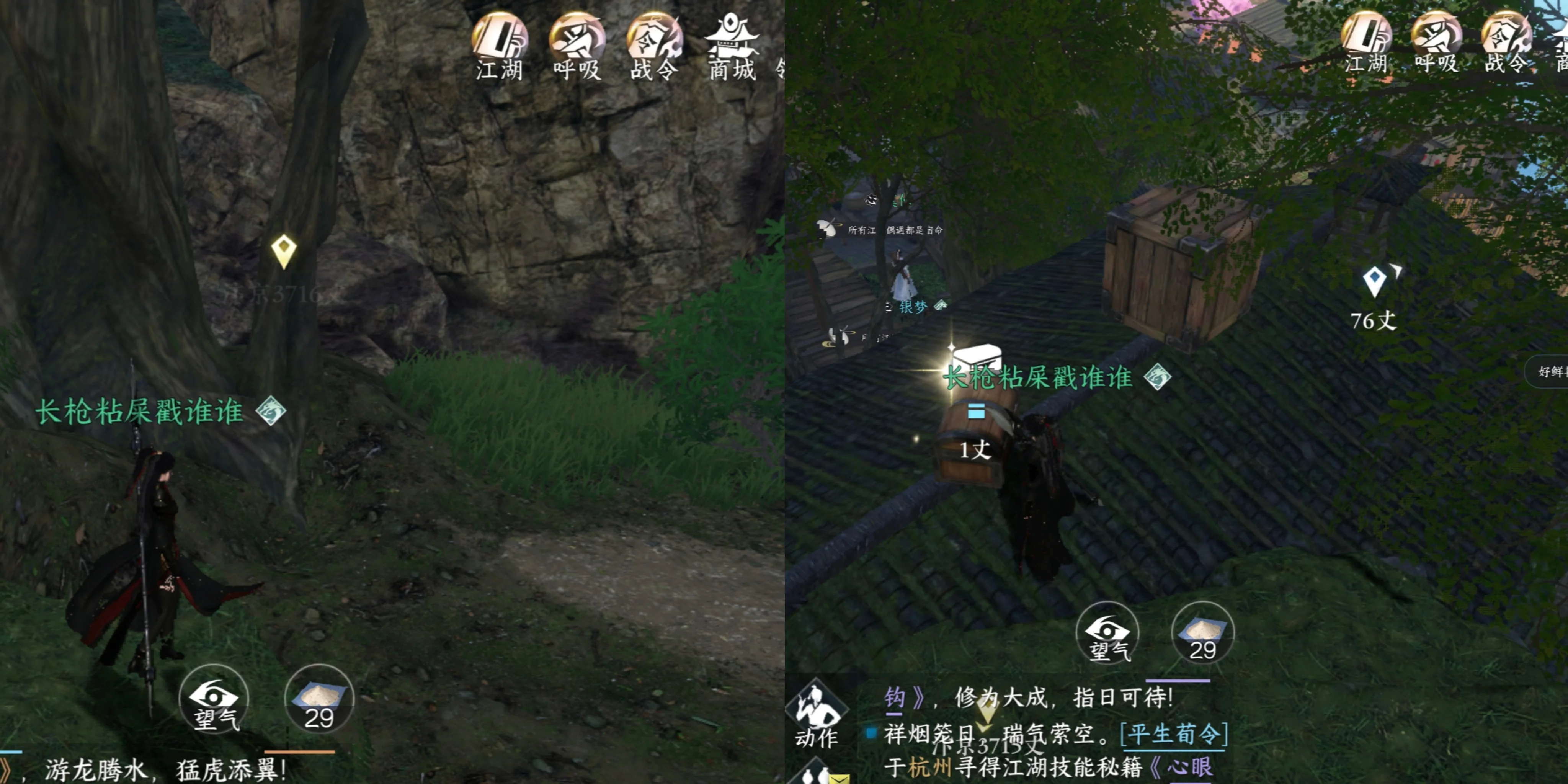 1:桃溪村码头坐标:929.114,使用【望气】可以看到发光的木箱,打碎它了可以获得宝箱。