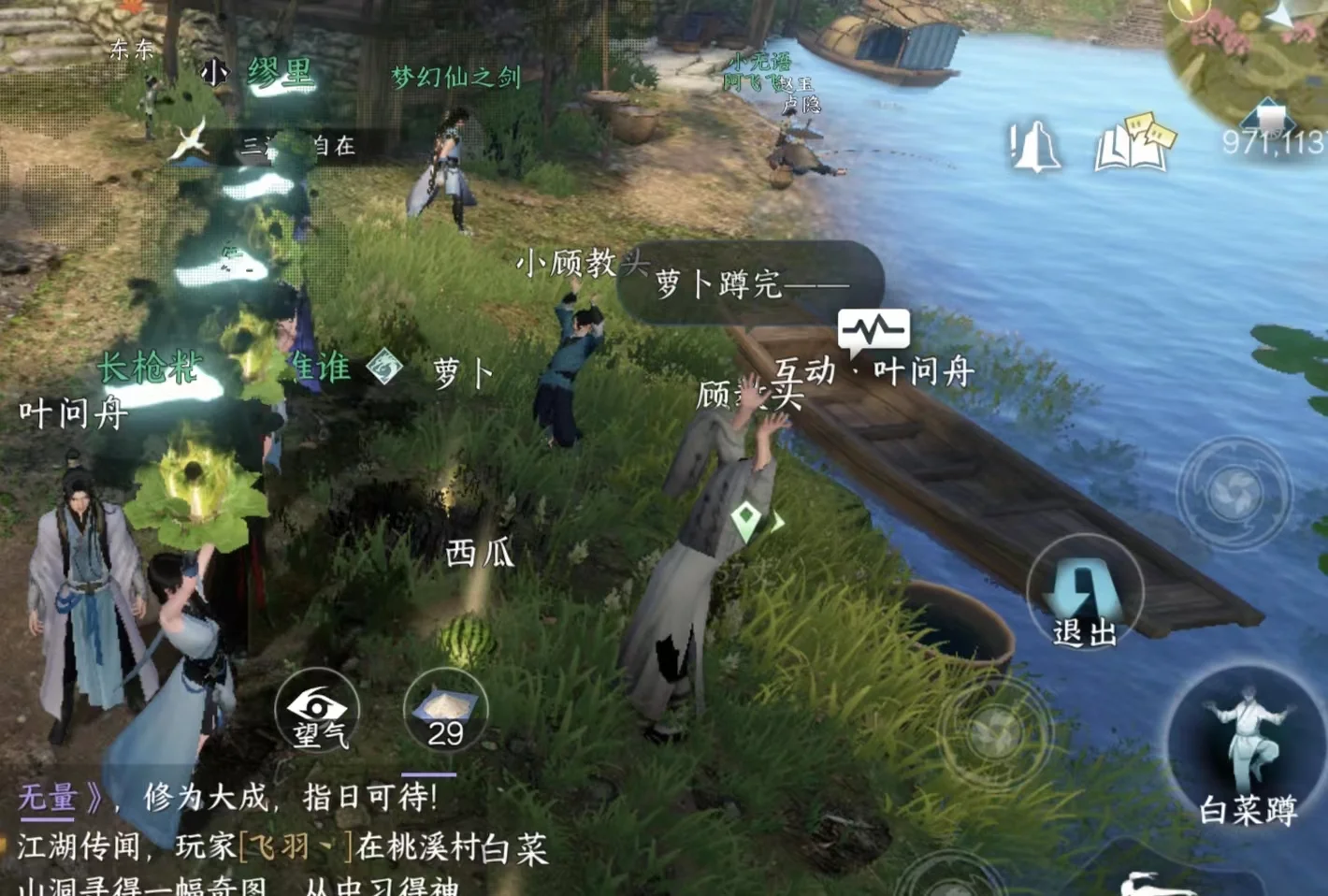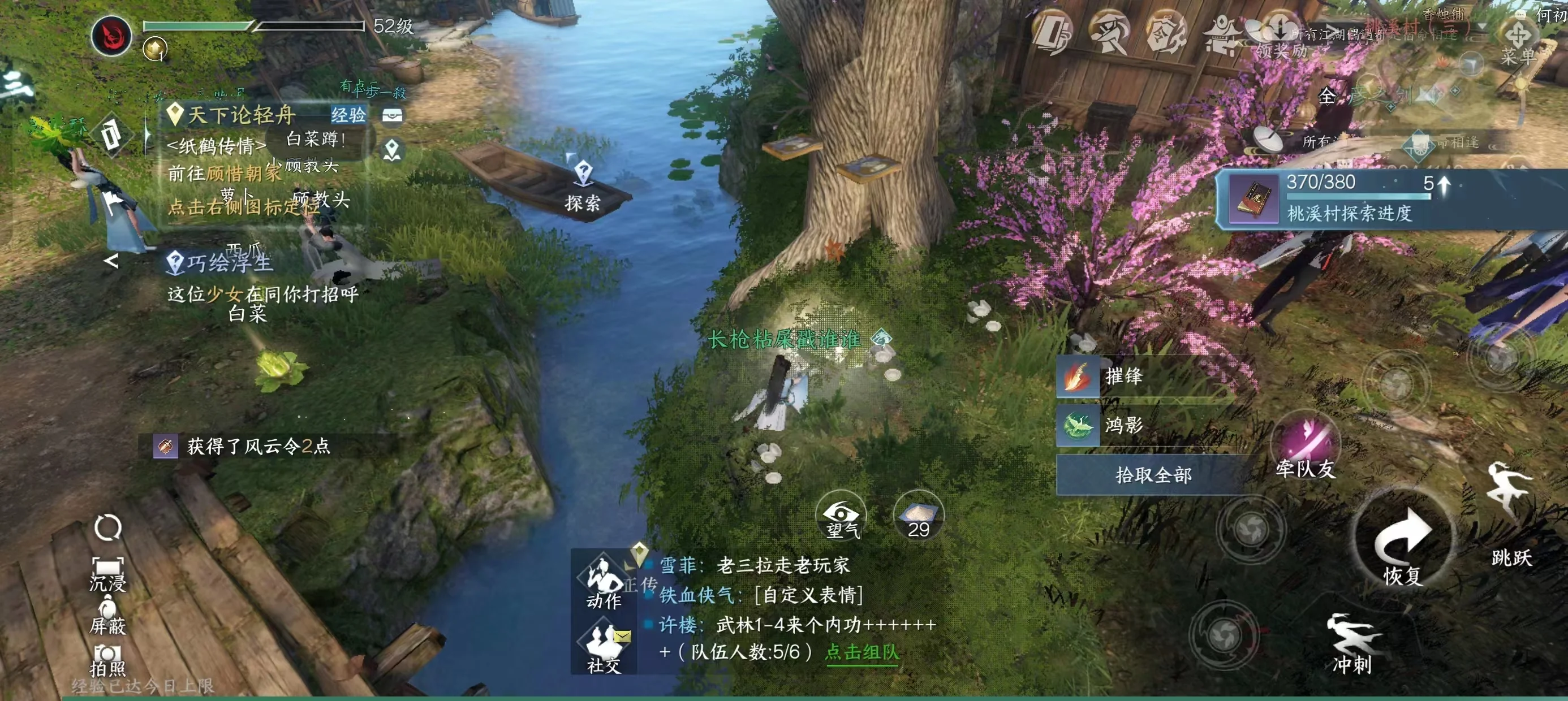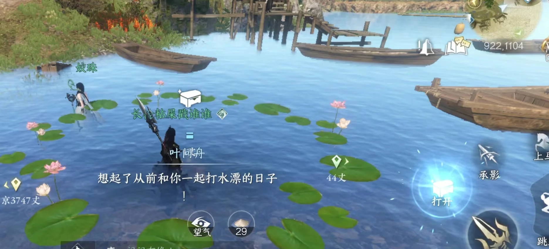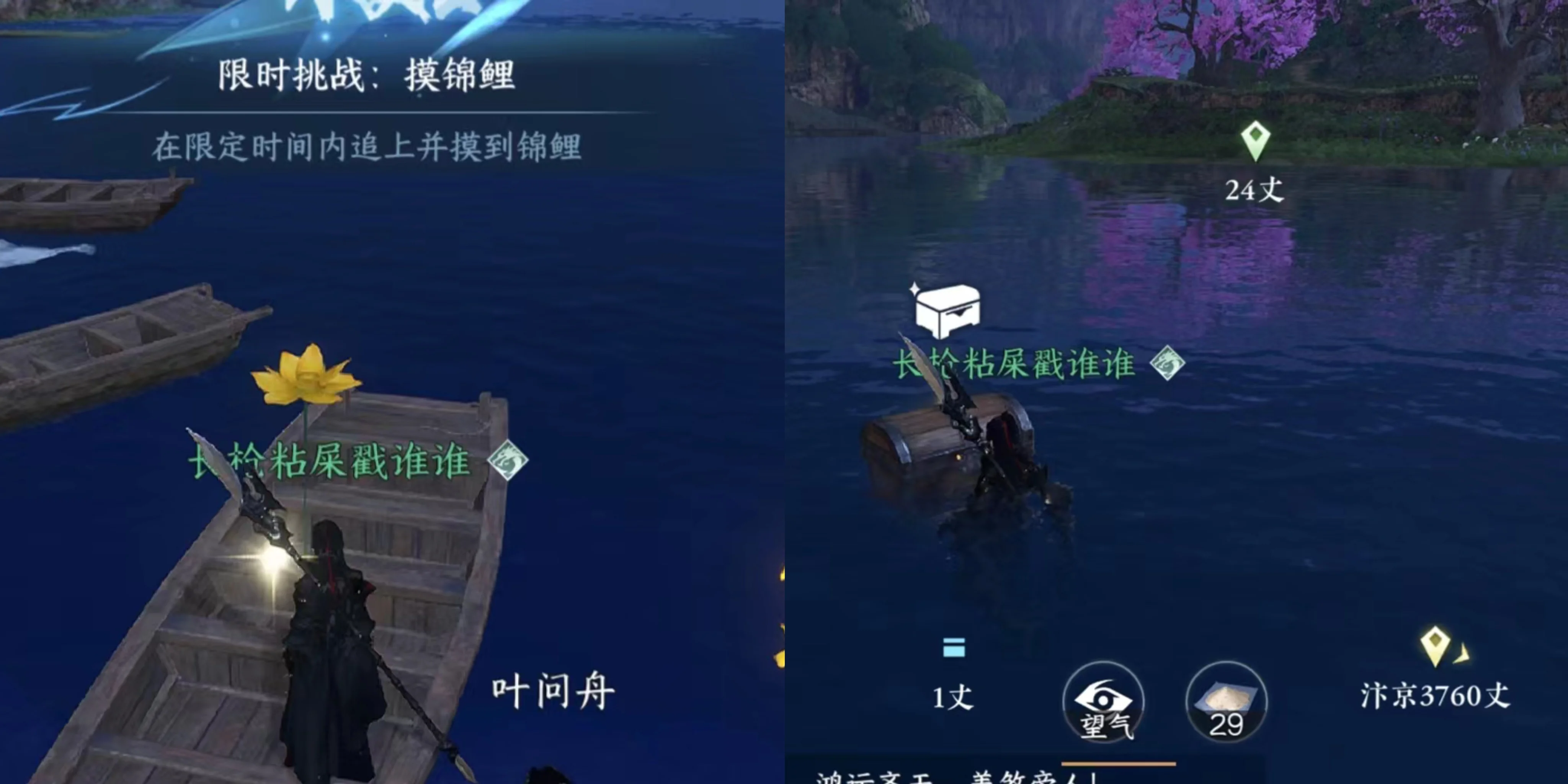 2:第二个宝箱在桃溪村河边码头处的船上有个发光的荷花,触碰荷花可以开启【摸锦鲤】任务,按照提示完成击中荷花,就可以获得宝箱。