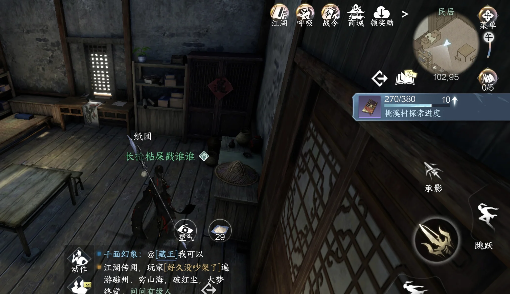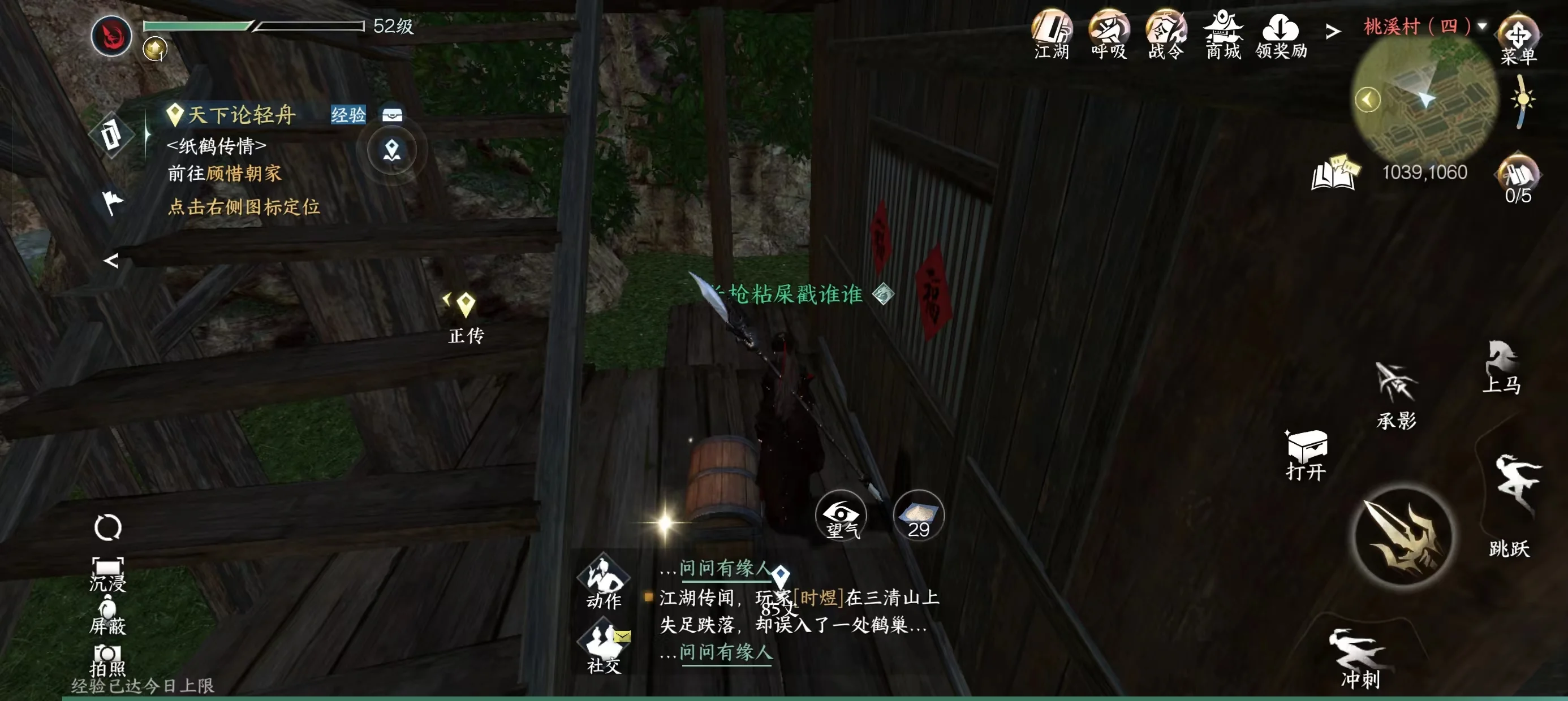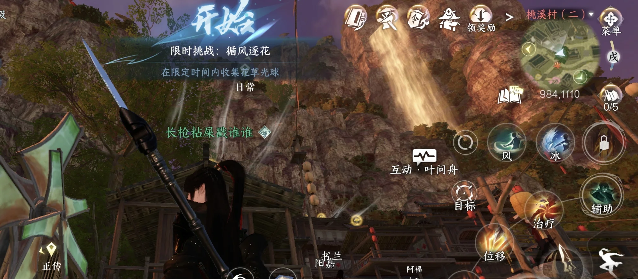 在桃溪村里坐标984.1110处有个【风车】使用江湖技能【风】可以触发挑战任务,完成以后可以获得宝箱。