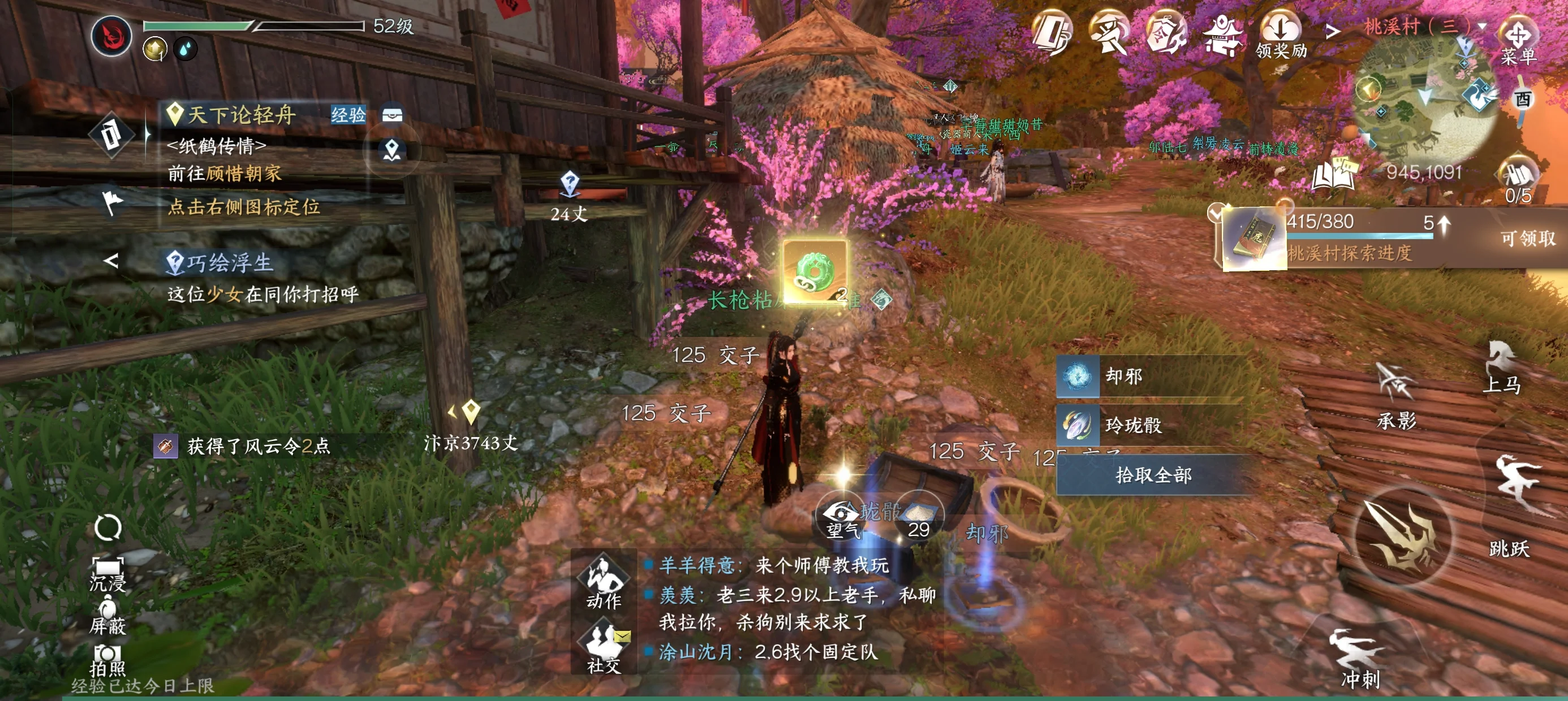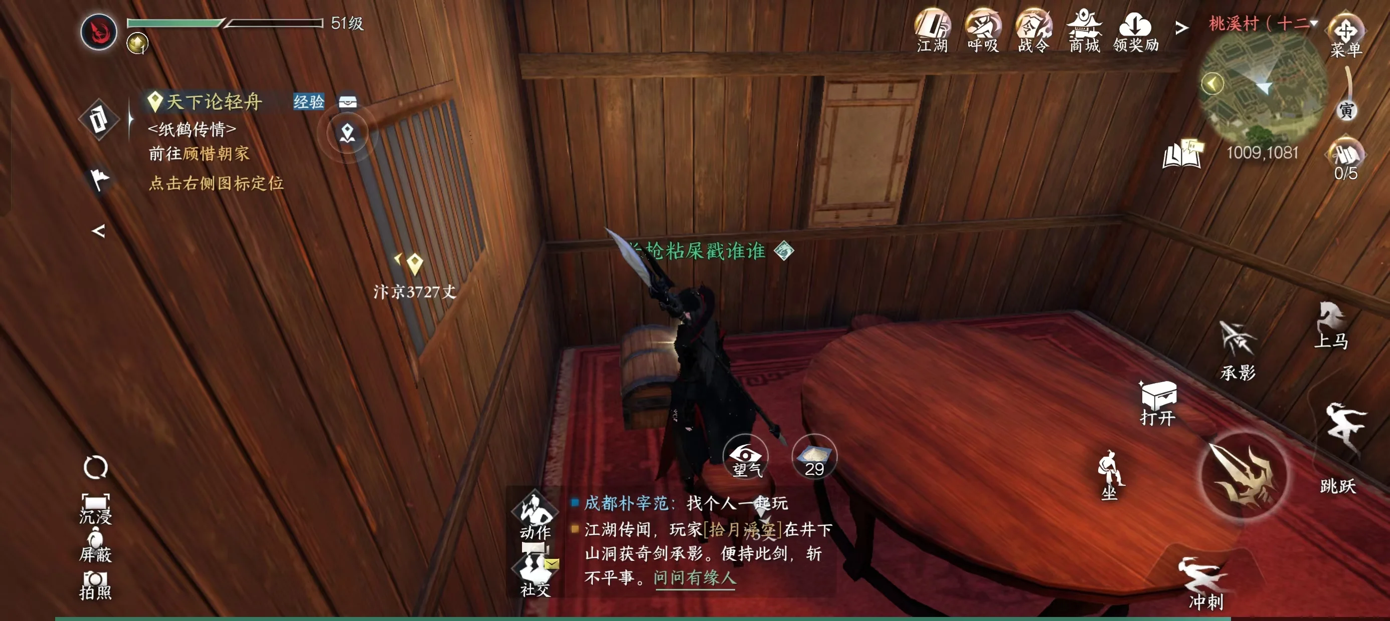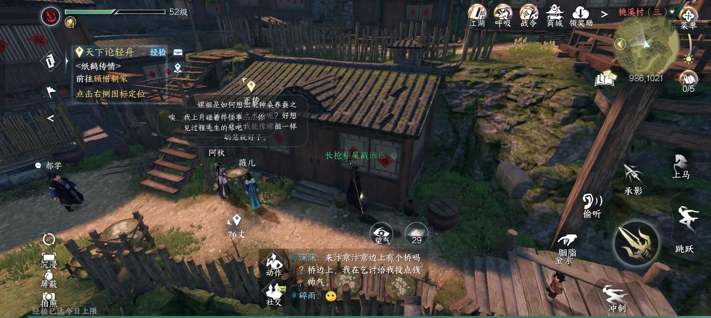 在桃溪村里坐标984.1110处有个【风车】使用江湖技能【风】可以触发挑战任务,完成以后可以获得宝箱。