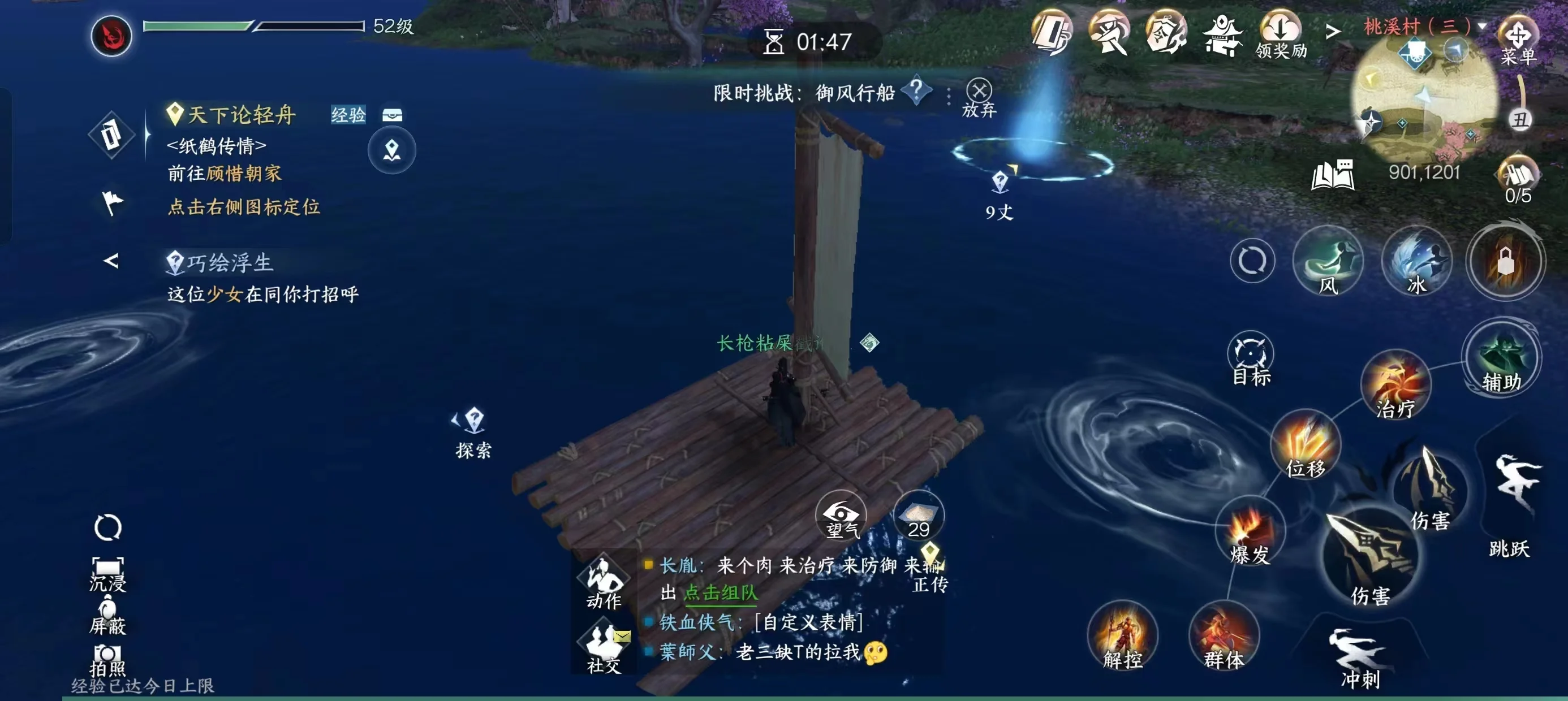 桃溪村第一个宝箱坐标917.1177。码头有个大风车使用江湖技能【风】可以触发挑战任务,用江湖技能【风】可以驱使船前进,到达指定地点就可以获取一个宝箱。