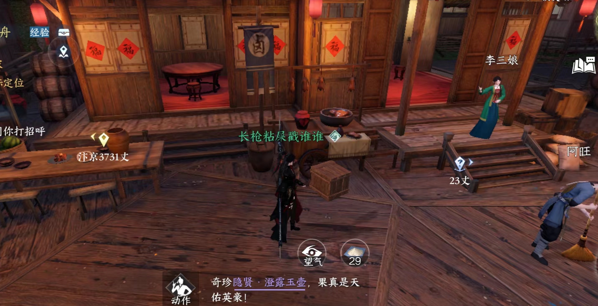 获取地点:李三娘店铺前的酒坛处旁边还有个npc宁言。