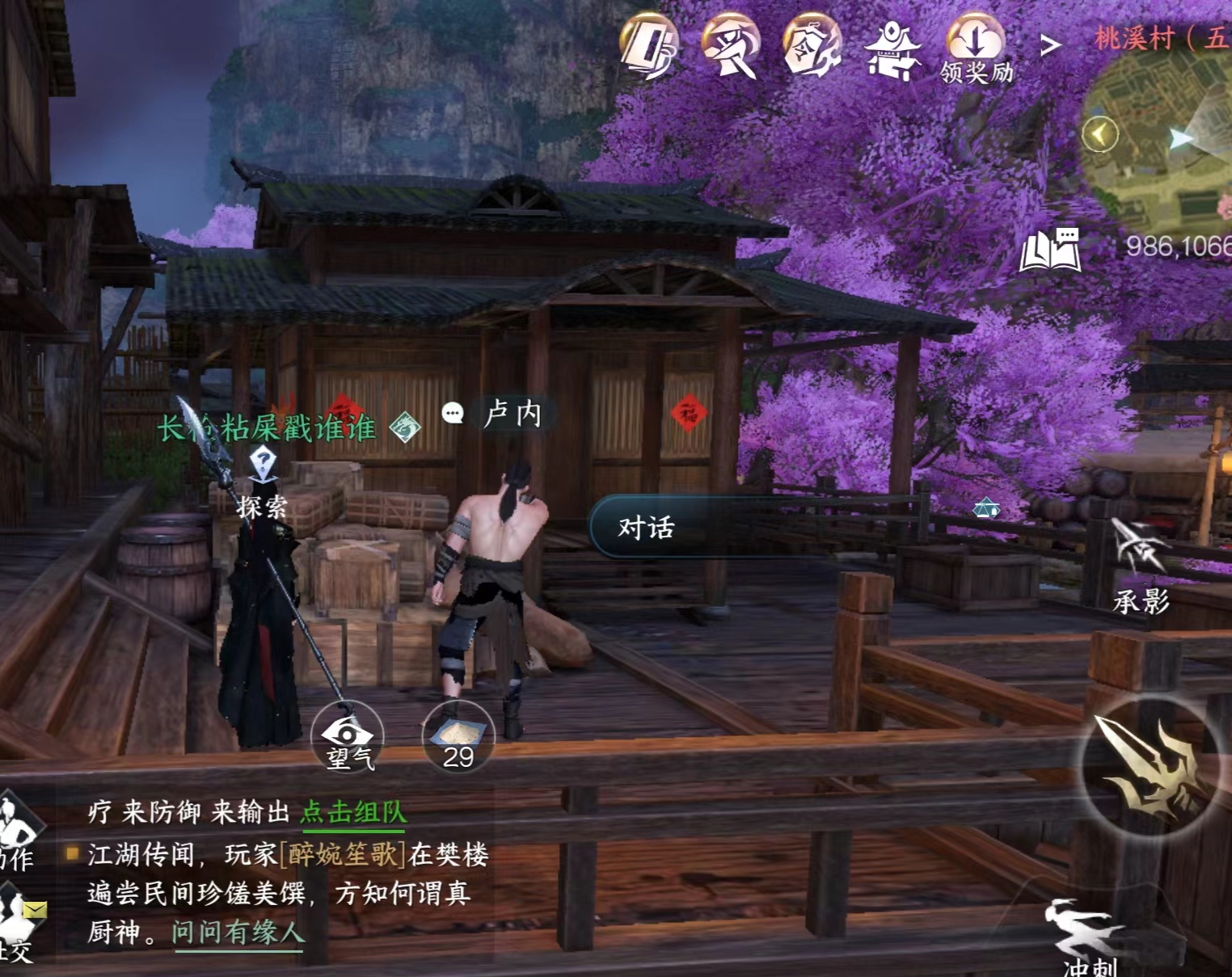 获取地点:桃溪村npc卢内上方的屋顶