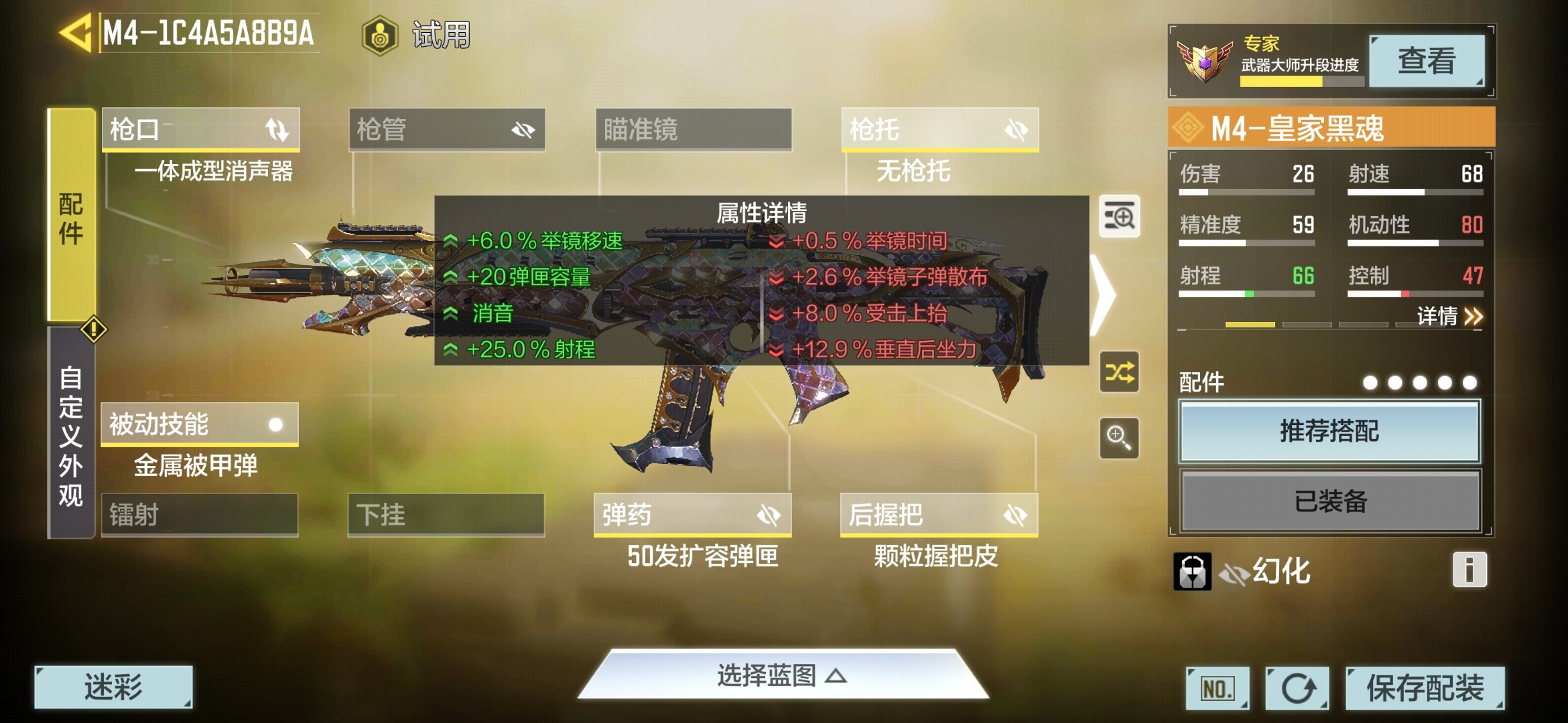 经过多次测试,老狼终于搭配出最舒服的枪械配件: M4核心TTK射程选择一体成型消声器来提高,同时给到消音效果。之后给到无枪托来降低举行时间的同时,提升举镜移速。续航方面给50发扩容弹匣,而后给到颗粒握把皮提升精准度。最后一个配件当然是给到最实用的金属被甲弹,如果和老狼一样不喜欢机瞄,可以换成红点瞄准镜来提升舒适度!