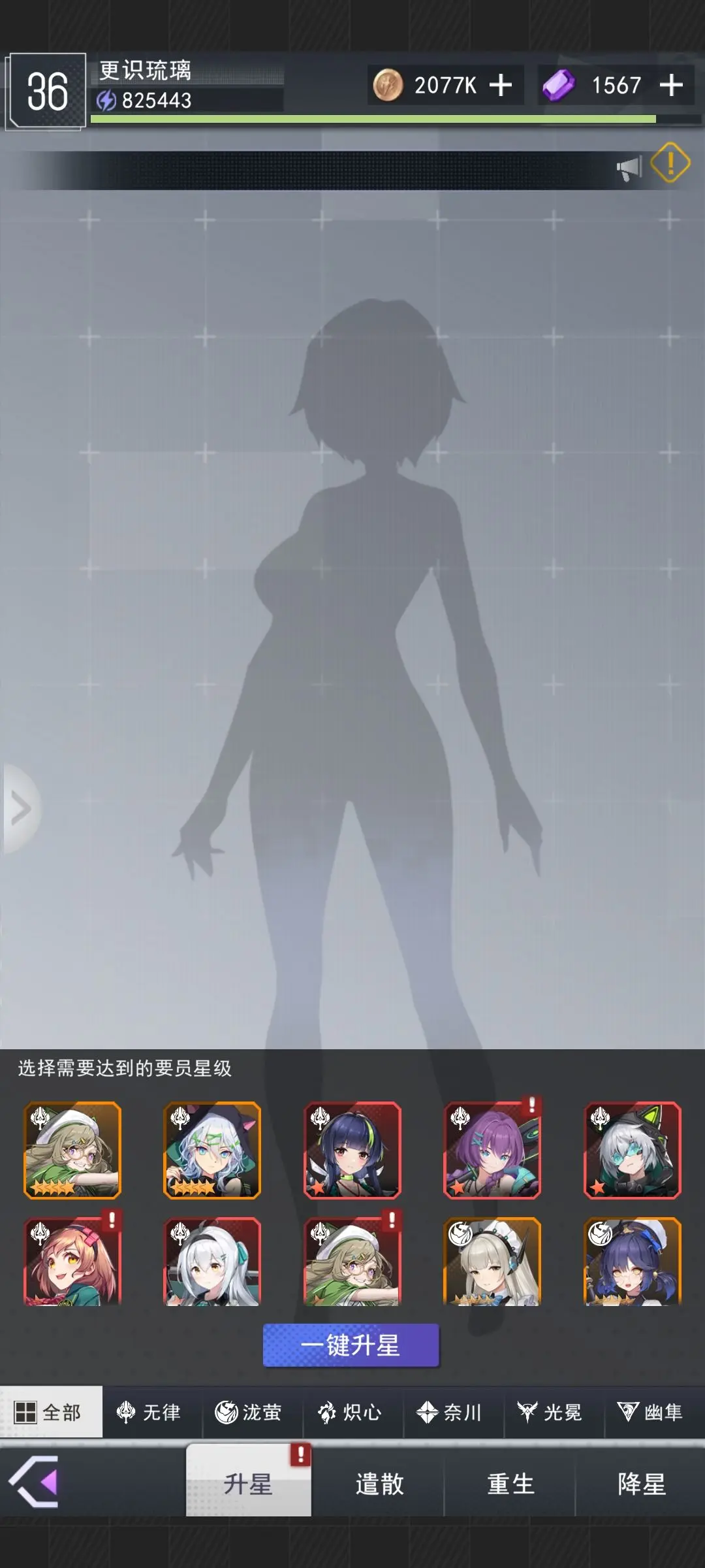 首先说一下升阶材料,测试期间每天登陆游戏就可以获得大量升阶材料,升阶的最好方式是直接把四星升到五星然后喂养主力,但是四星之间也有差距比如玛姬和艾薇都是从四星升到五星,但是艾薇无法继续升星,而玛姬可以继续升到十星,所以前期喂艾薇即可,因为玛姬本体是四星所以升星要比本体五星的容易很多,所以玛姬之类的很适合当做高阶升阶材料。
