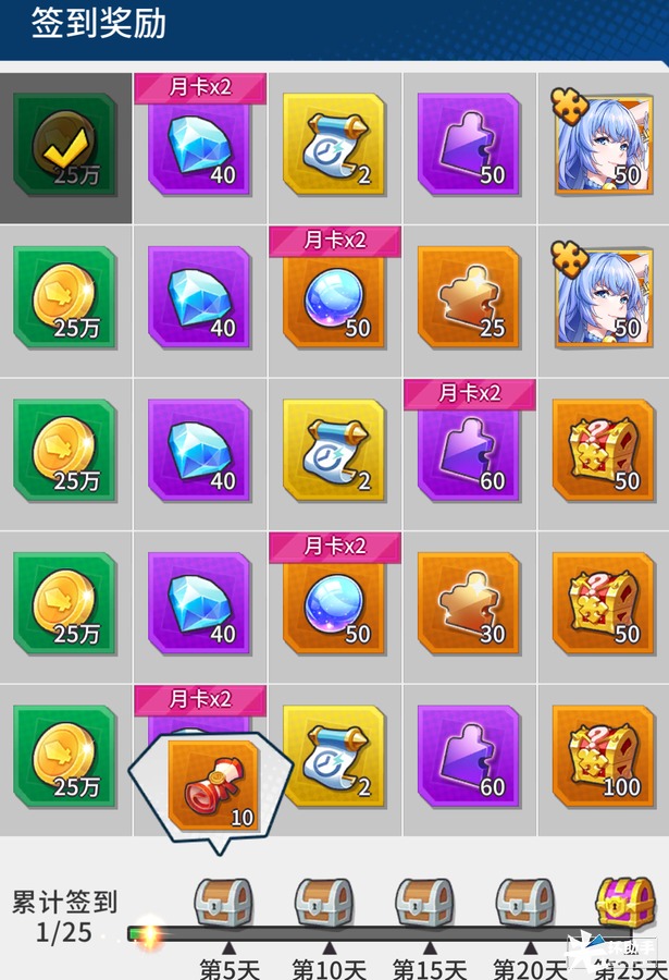 5. 每日签到:签到即领丰厚奖励,金币、钻石、十连抽领不停。月卡还有额外翻倍奖励,记得每天上线领取哦~