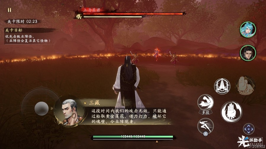2、每一关均会有特殊的怪物—业障怪,业障怪周身包裹着火焰,只要业障还存活就会不断的复活其他怪物。在部分关卡内甚至存在两只业障怪,只有快速连续击杀才可避免相互复活的情况。