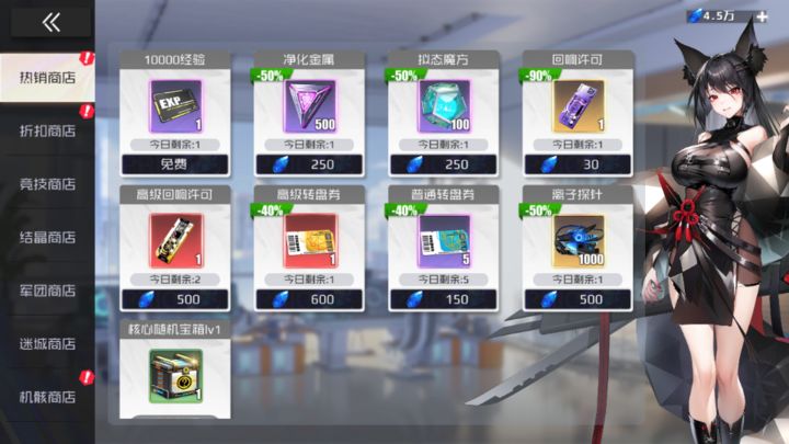 热销商店推荐购买:净化金属*500;拟态魔方*100;回响许可*1;高级回响许可*1;高级转盘券*1
