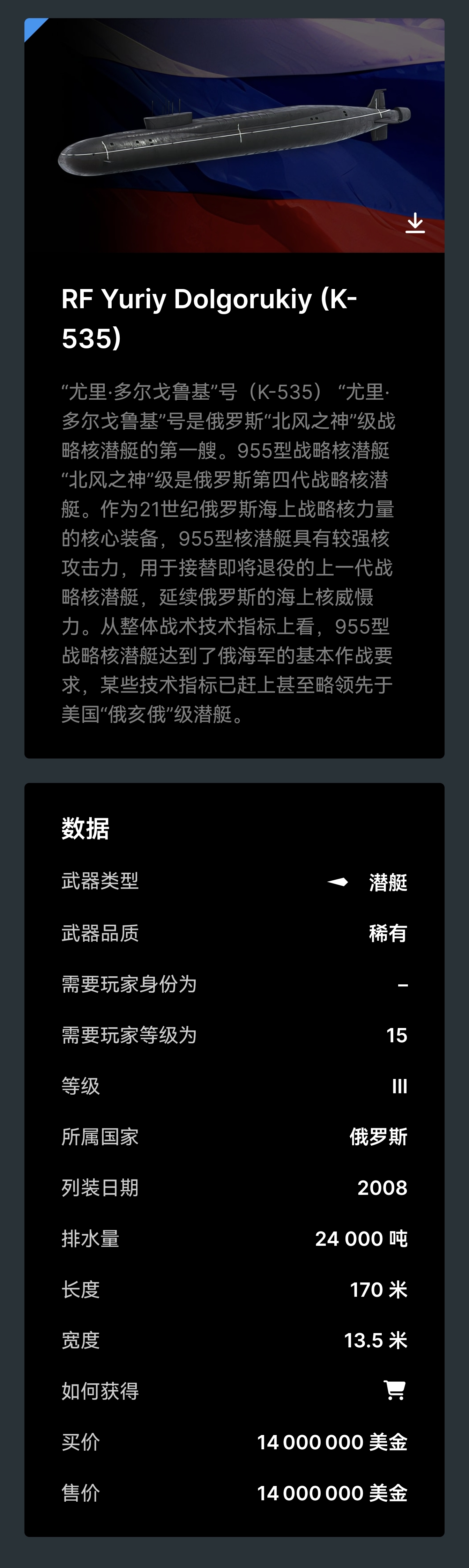 RF Yuriy Dolgorukiy (K-535)战舰数据一览