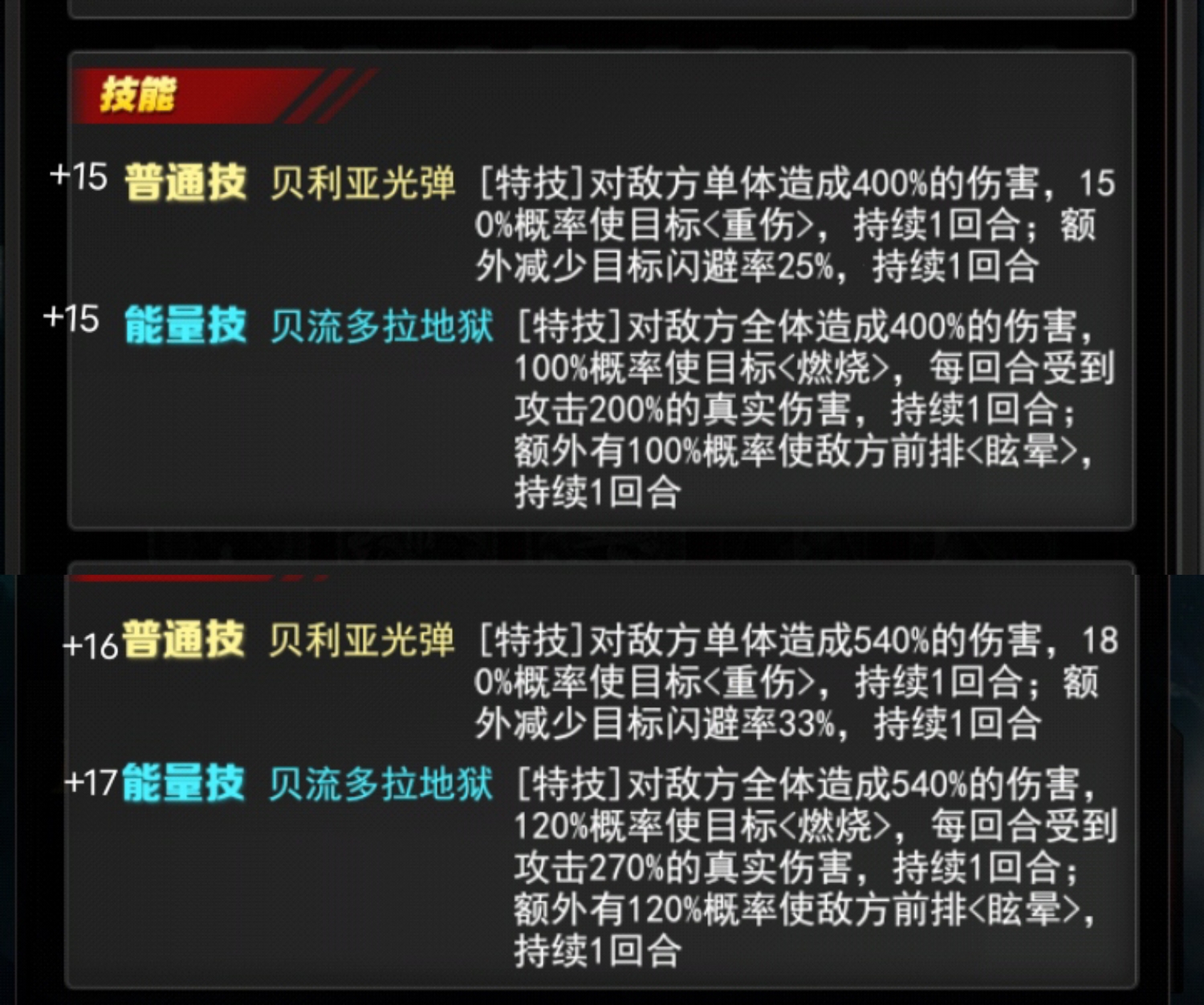 +16普通技 贝利亚光弹 [特技]对敌方单体造成540%的伤害,180%概率使目标<重伤>,持续1回合;额
