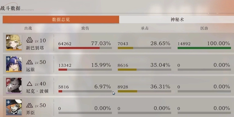 有巴贝塔的小伙伴不想浪费这个角色的,可以走暴击流这样玩,又当主C又当奶妈护全队,当然我不建议你们去专门去抽巴贝塔,因为其他角色拉这么强后都可以打出这个效果,不过这只是三人副本,相信到后面需要长线作战或者说四人副本的时候,巴贝塔这个表现力只会更加厉害。