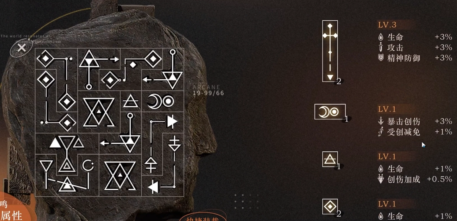 也就是说巴贝塔的这个流派呢,比较平民,不需要很多六星角色,这里我都没有让的士出过攻击卡。所以说共鸣我是必须建议你们上到十级的,共鸣图可以这样子摆,提供了高达32%的暴击率。