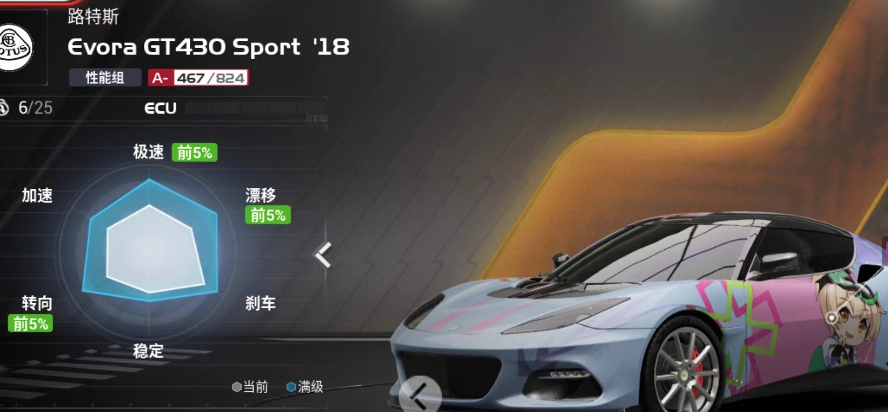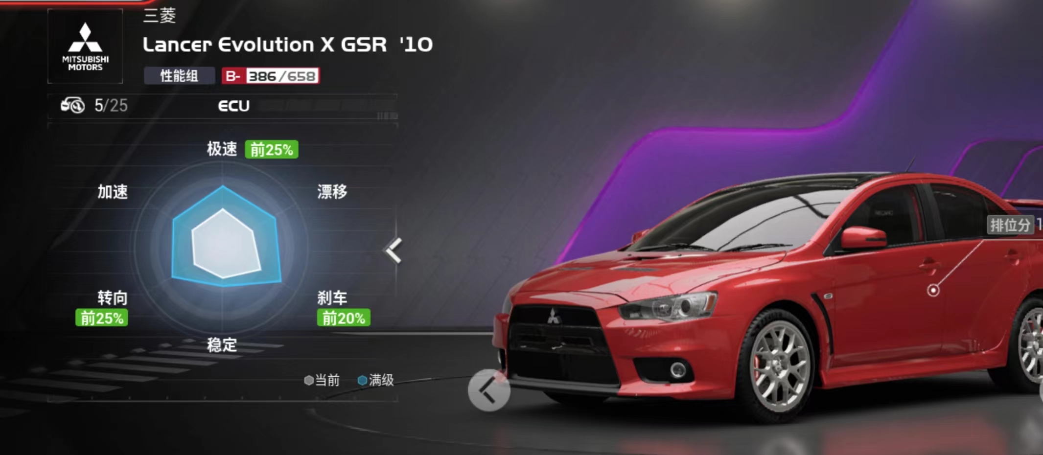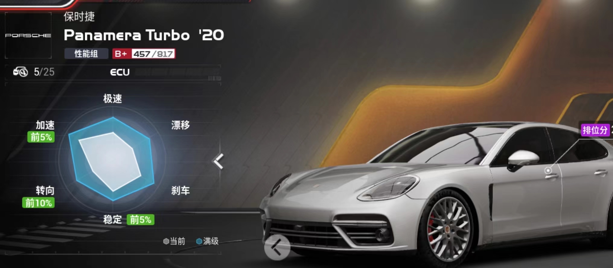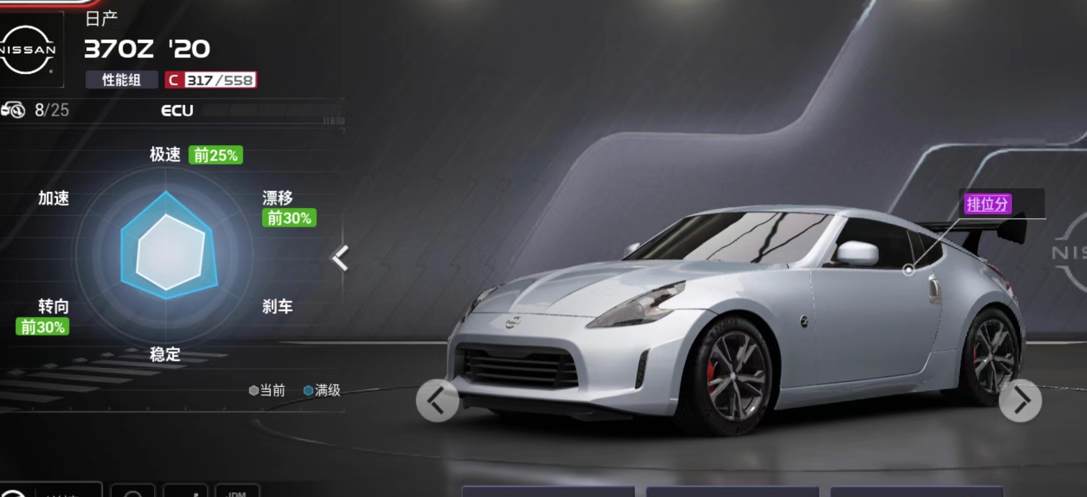 解析:主要是一个手感的提升,因为这辆车的加速能力毋庸置疑,车身也稳,所以引擎 轮胎 车身都保持不变,电控用开放 底盘用赛道,轮胎用中性胎提升速度的同时也保持了转向灵敏。