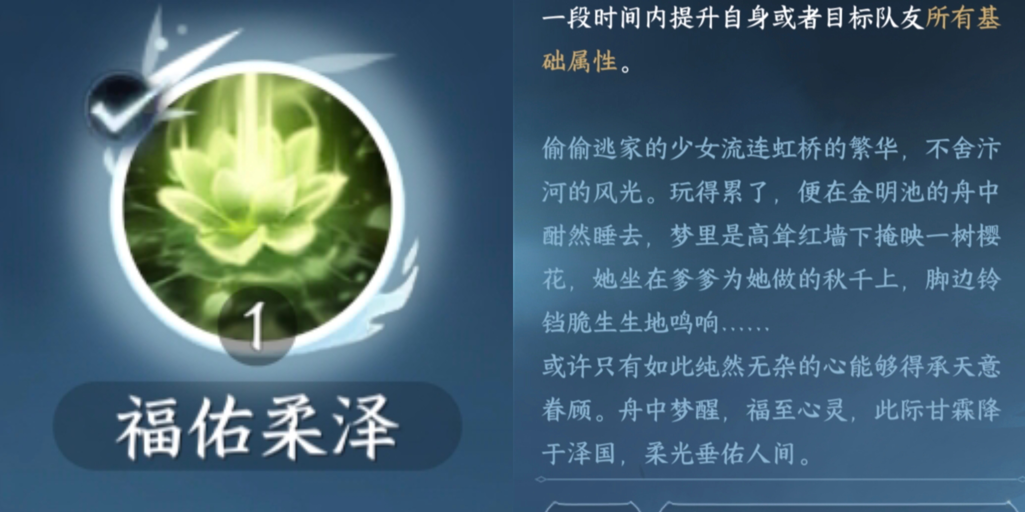 1:首先就是江湖—群侠技能【福佑柔泽】