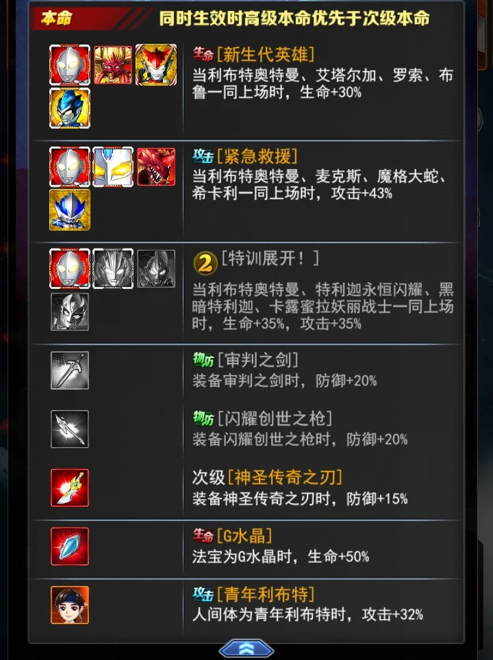 +9 银河救援队 上阵出场时,己方场上每存在一名奥特曼或宇宙人,自身受到的治疗效果