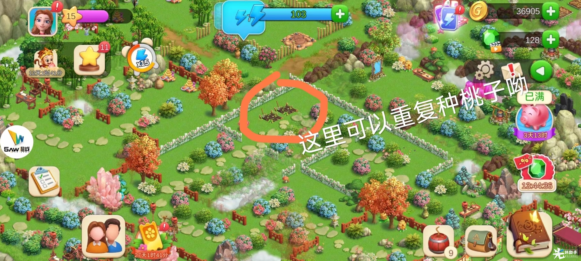 毛球温馨提示勤勉搬运的后辈君发布于 2023-07-10关注各位镇长是否在【仙桃宴】遇到缺少桃子的问题呢,毛球提醒您,地图中有两块田可以【种植桃子】看图↓↓↓ 这里可以无限种植桃子,不用再去其他地方挖啦