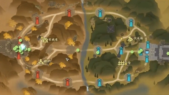 所以这个玩法合理的运用团队协调,指挥成员去收集野外资源和正面推塔都是尤为的重要。也可以使用收集来的资源开启技能,提供增益buff或者修复大旗耐久度,也就是血量来获得优势,取得胜利。